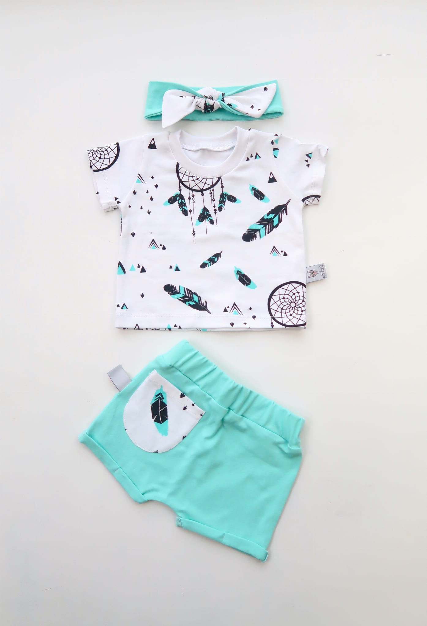 Aqua dreamcather set - t-shirt, shorts and headband