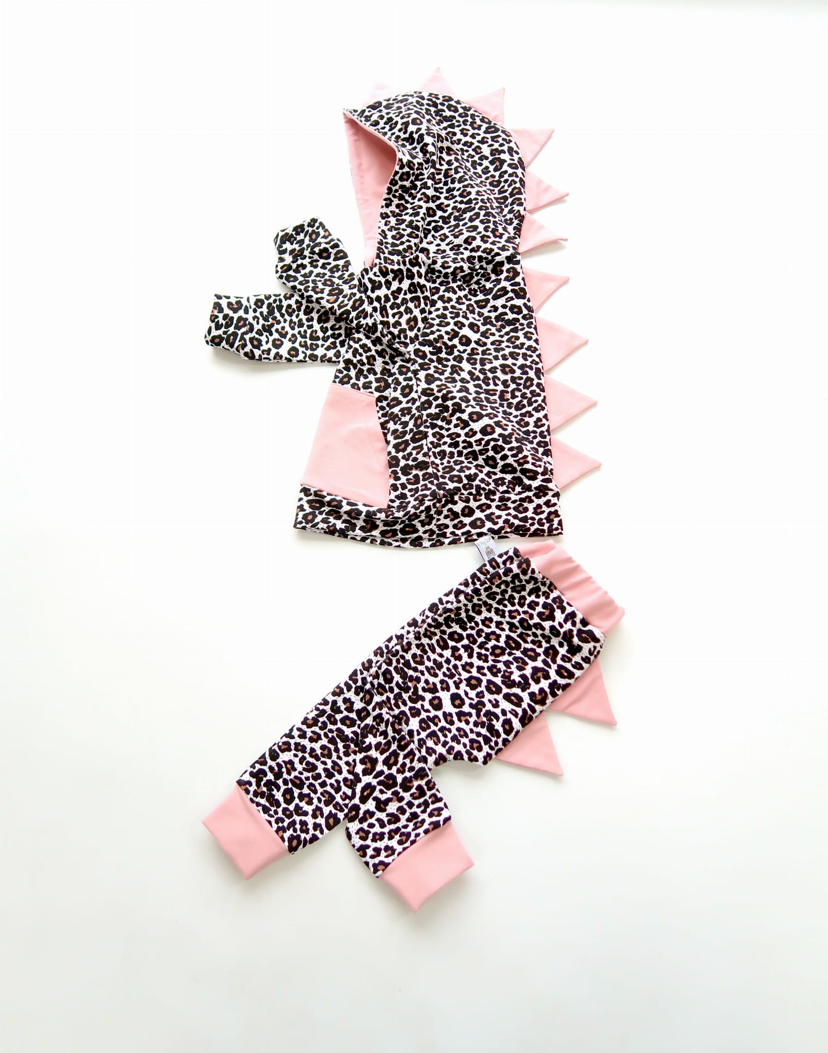 Dino feathers set on gray - hooded blouse + trousers (1) (1)