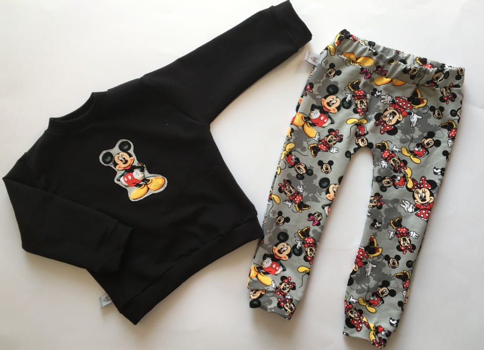 Mickey and Minnie on gray set - blouse + trousers (1)