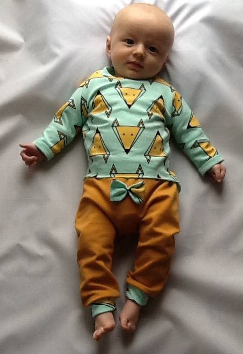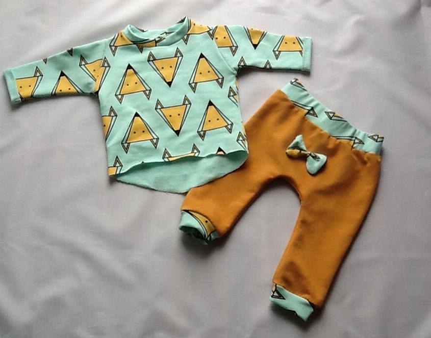 Mint Foxes set with bow - trousers + long sleeve