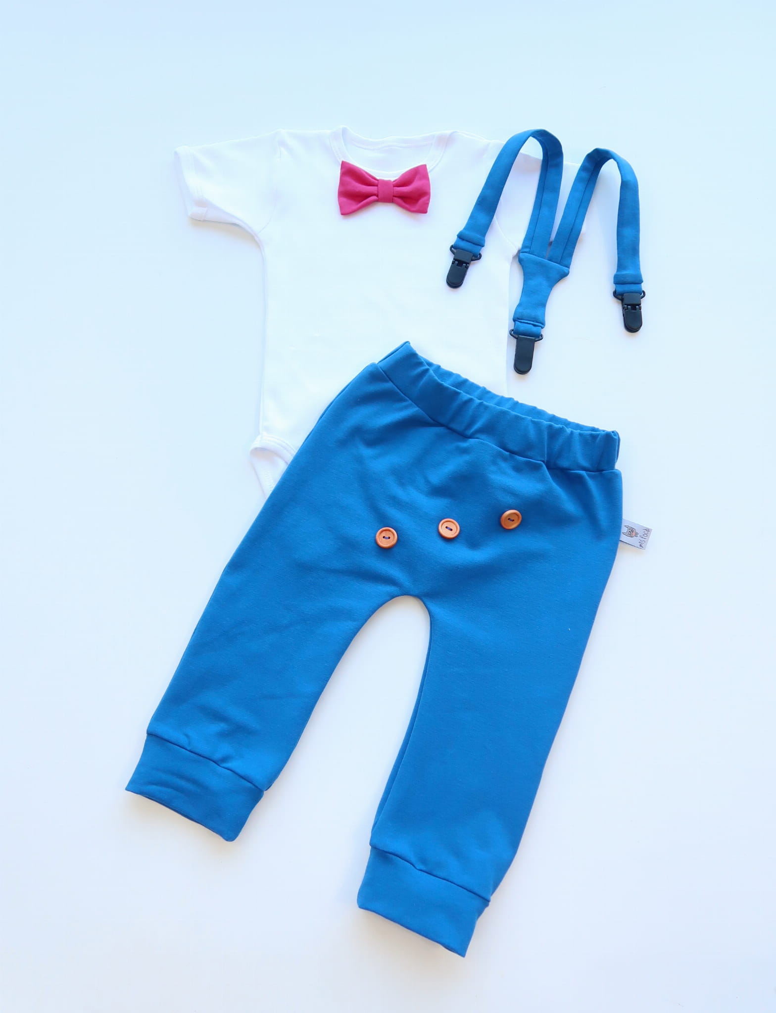 Wonderfully soft, elegant and, above all, comfortable set- trousers, body with bowtie and braces :) Made with particular care about details, with the best quality materials.