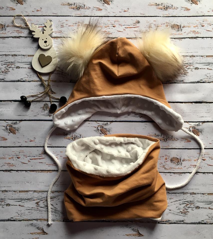 A wonderful, two-layer set for autumn and winter. A set - cap and chimney scarf is made with the best quality materials - warm, soft and fluffy.