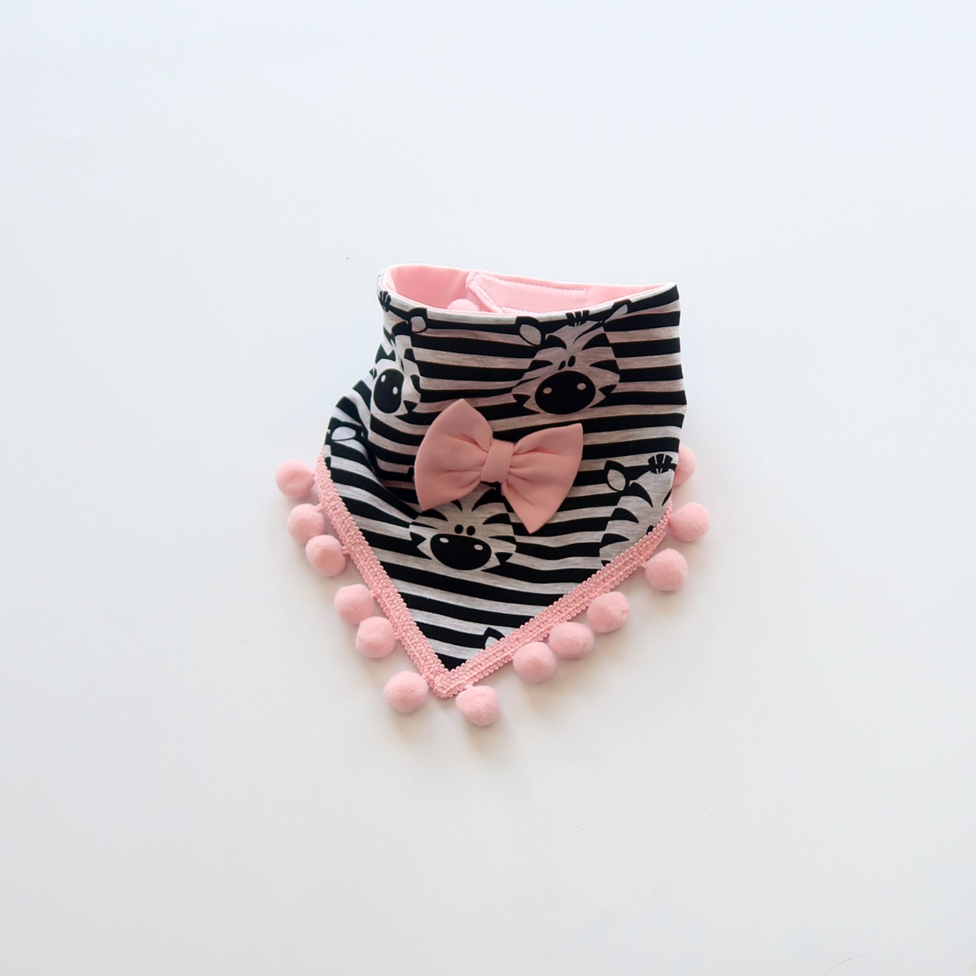 Pink zebras neckerchief with pom-poms