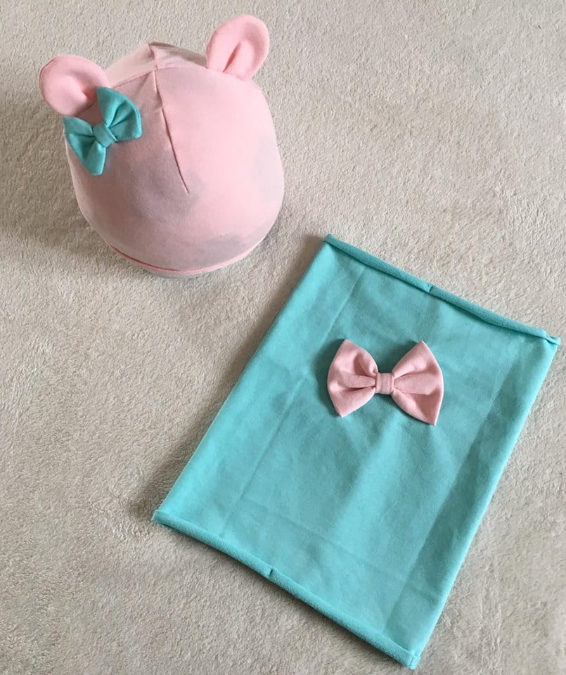 Set with ears - pink and mint (1)