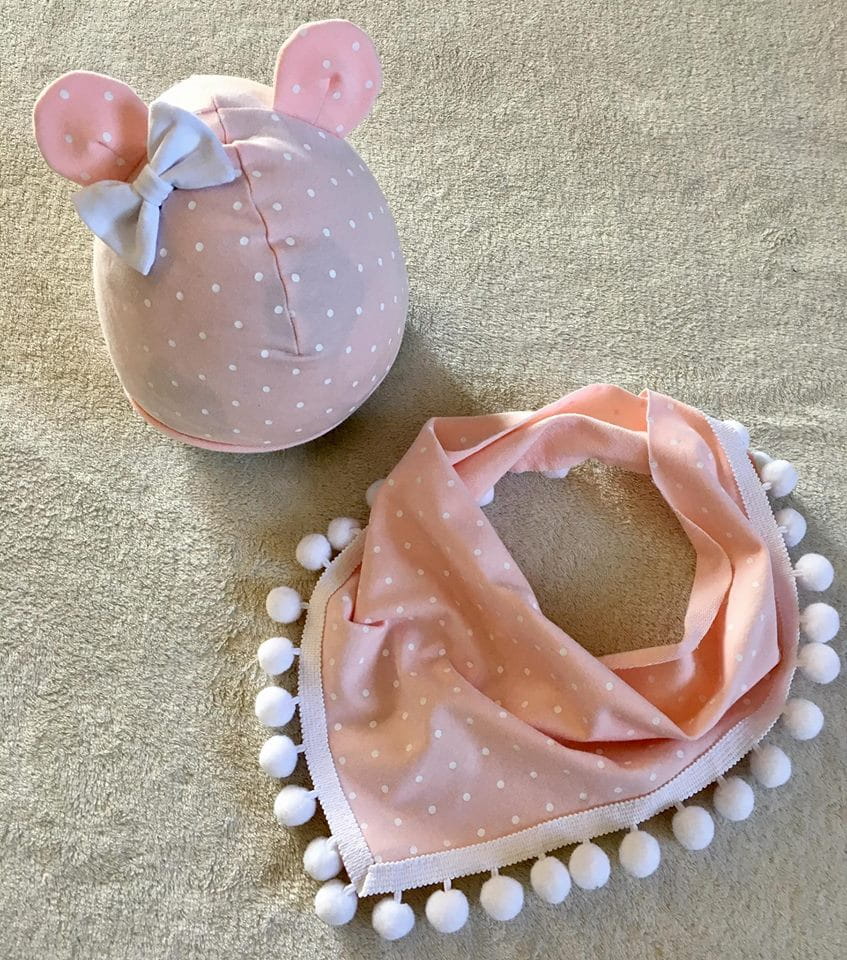 Spots on pink set with small ears - cap and neckerchief (1)