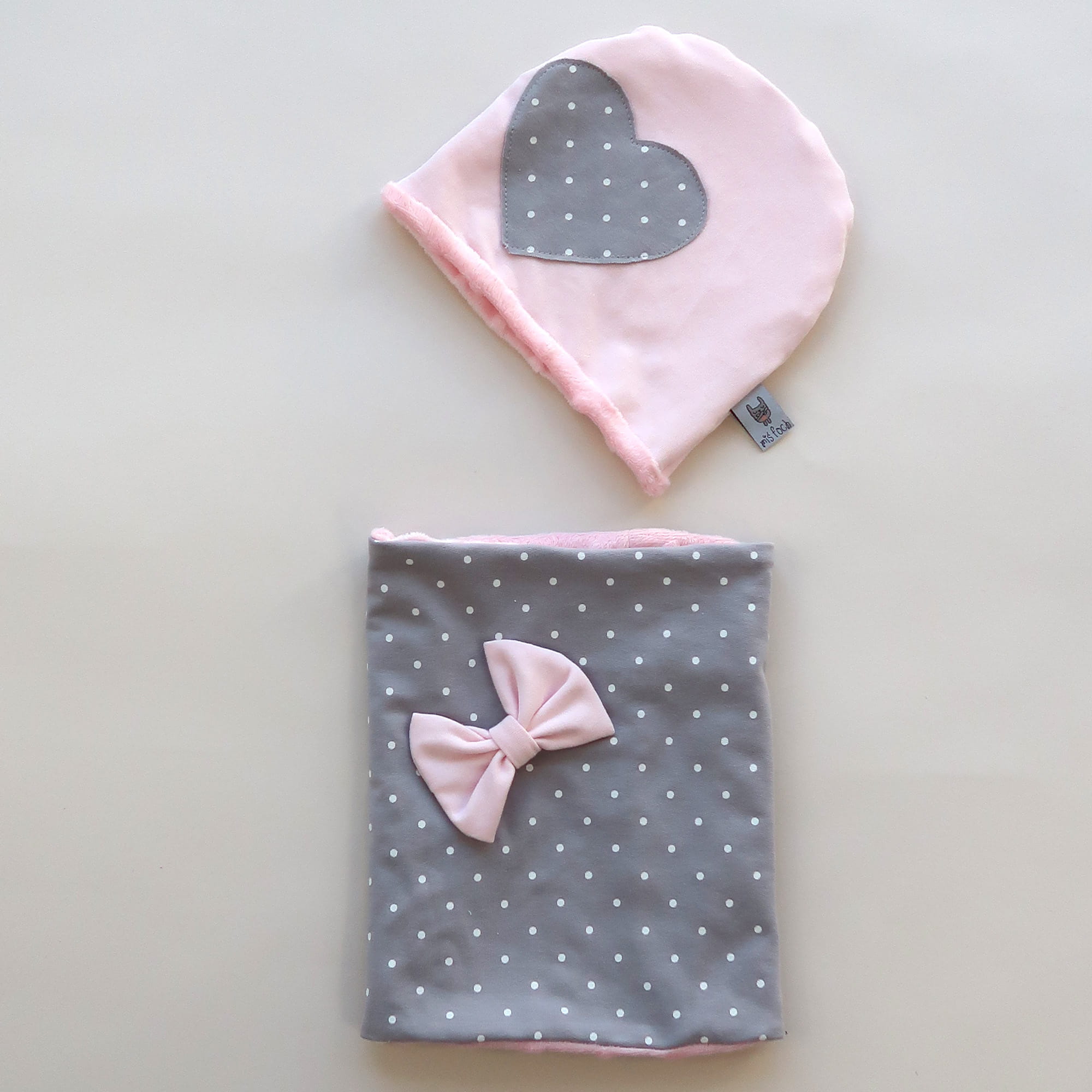 Spots set with pink bow - cap and chimney scarf (1)