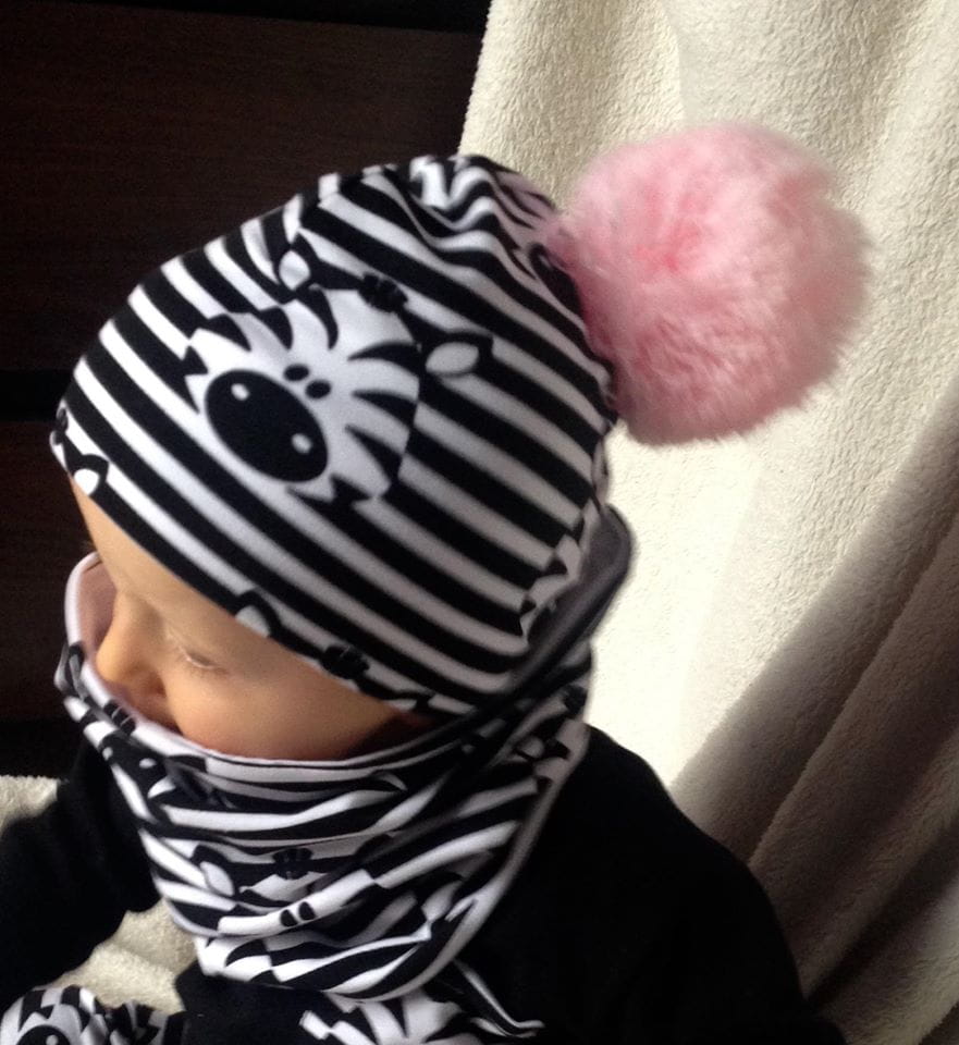 Zebras set with pom-pom - cap and chimney scarf