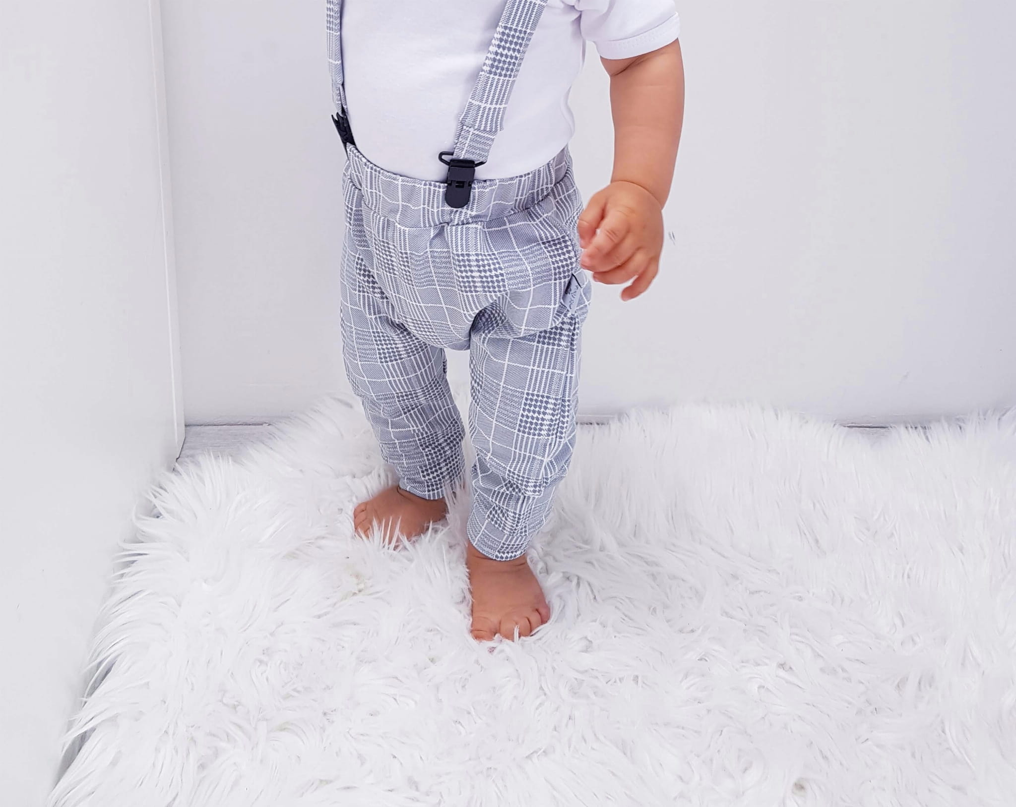 Komplet krata Glen - frak, body, baggy, szelki i bonetka