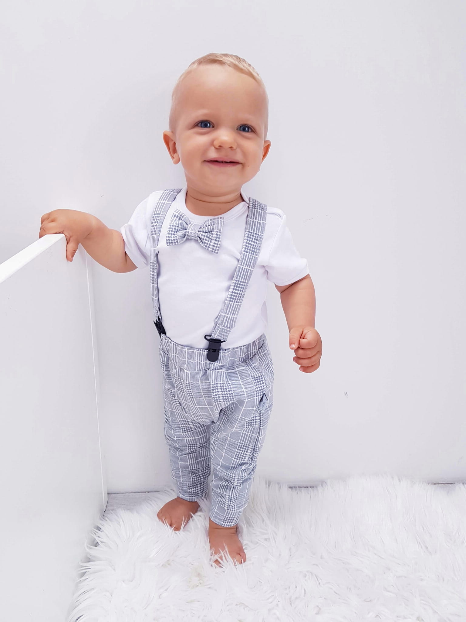 Komplet krata Glen - baggy i body z muchą oraz szelki
