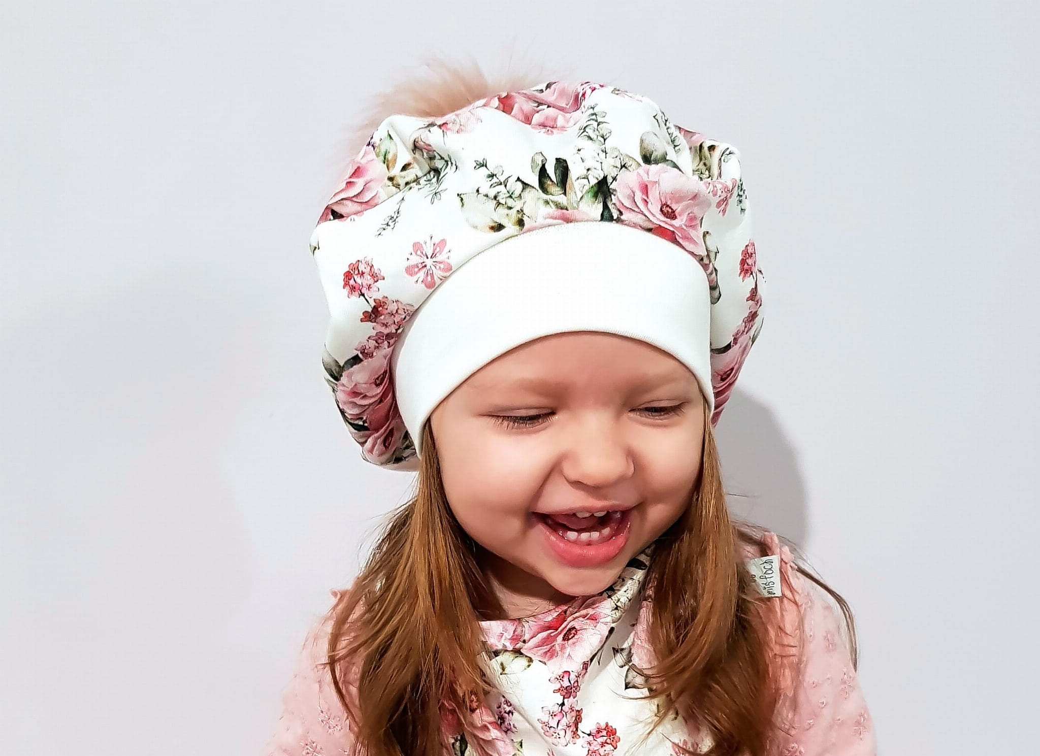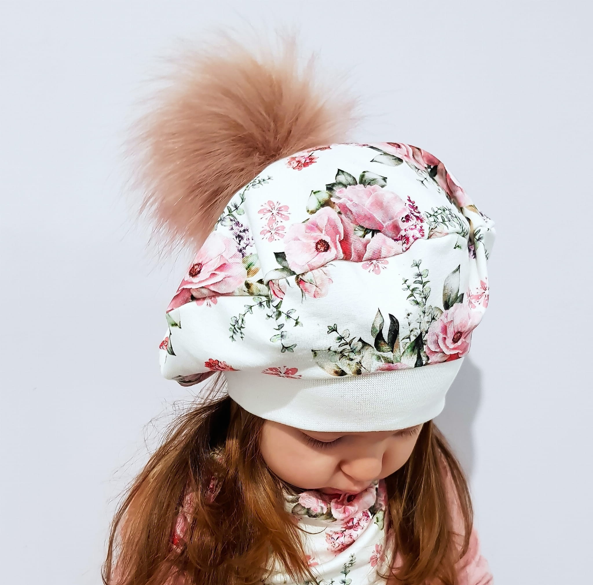 Komplet bukieciki róż z uszami - czapka i chusta
