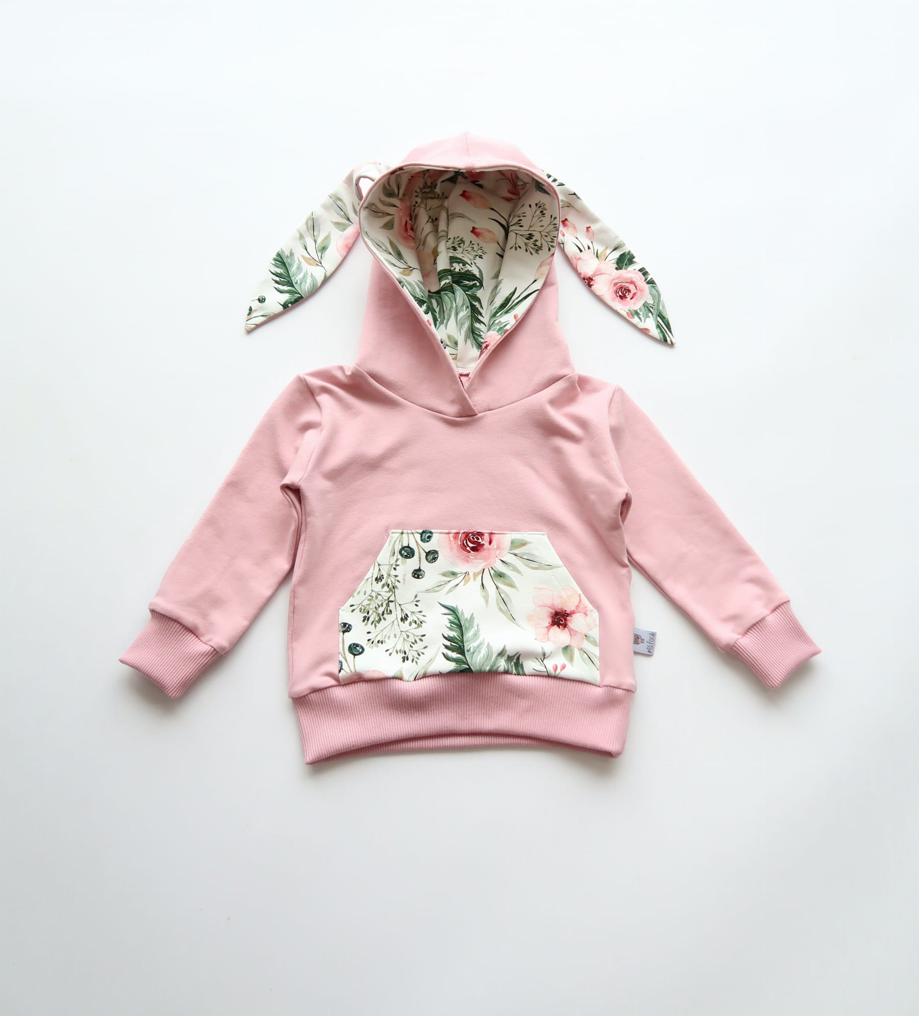 Komplet kwiaty w ogrodzie i róż kwarcowy - bluza króliczek i legginsy z falbankami