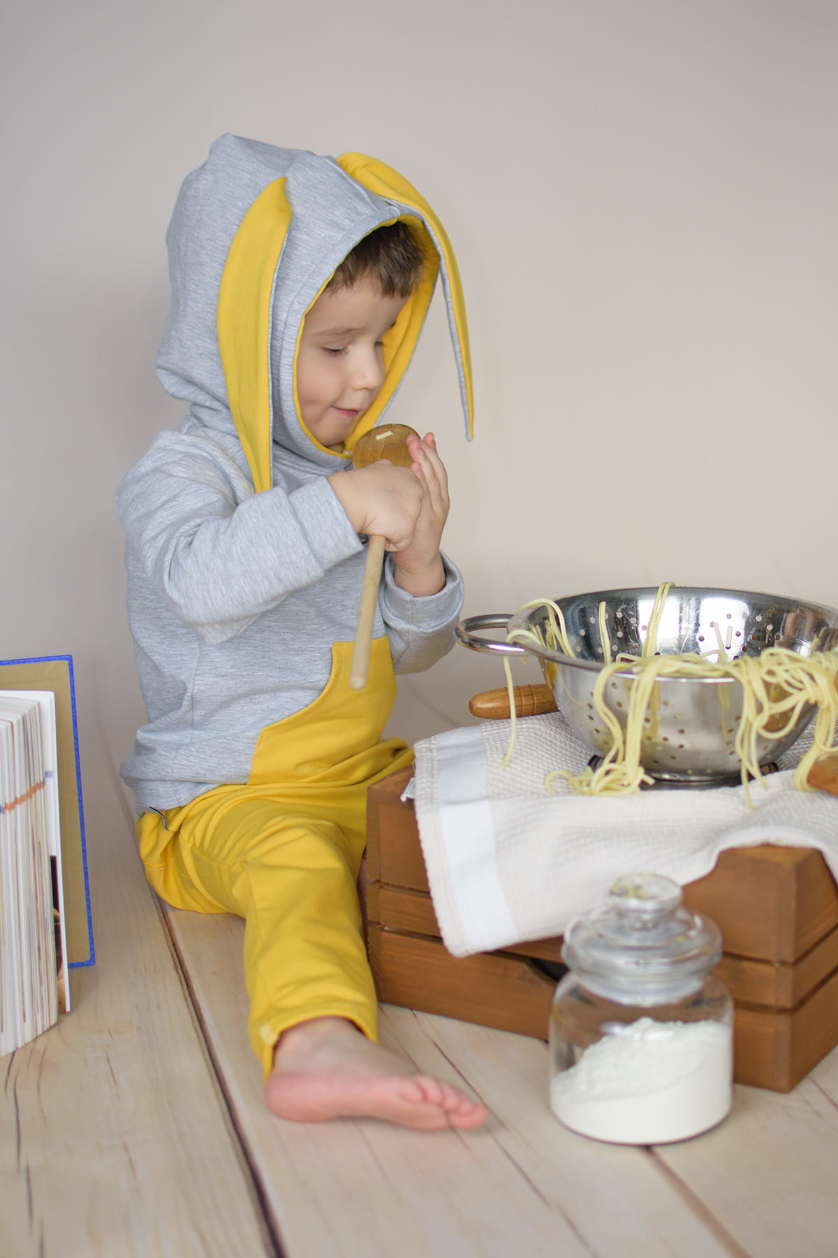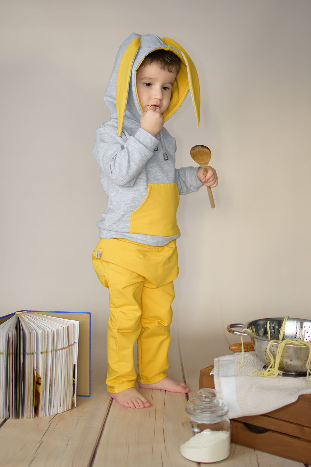 Komplet króliczek groszki i musztarda - baggy i bluza na zamek