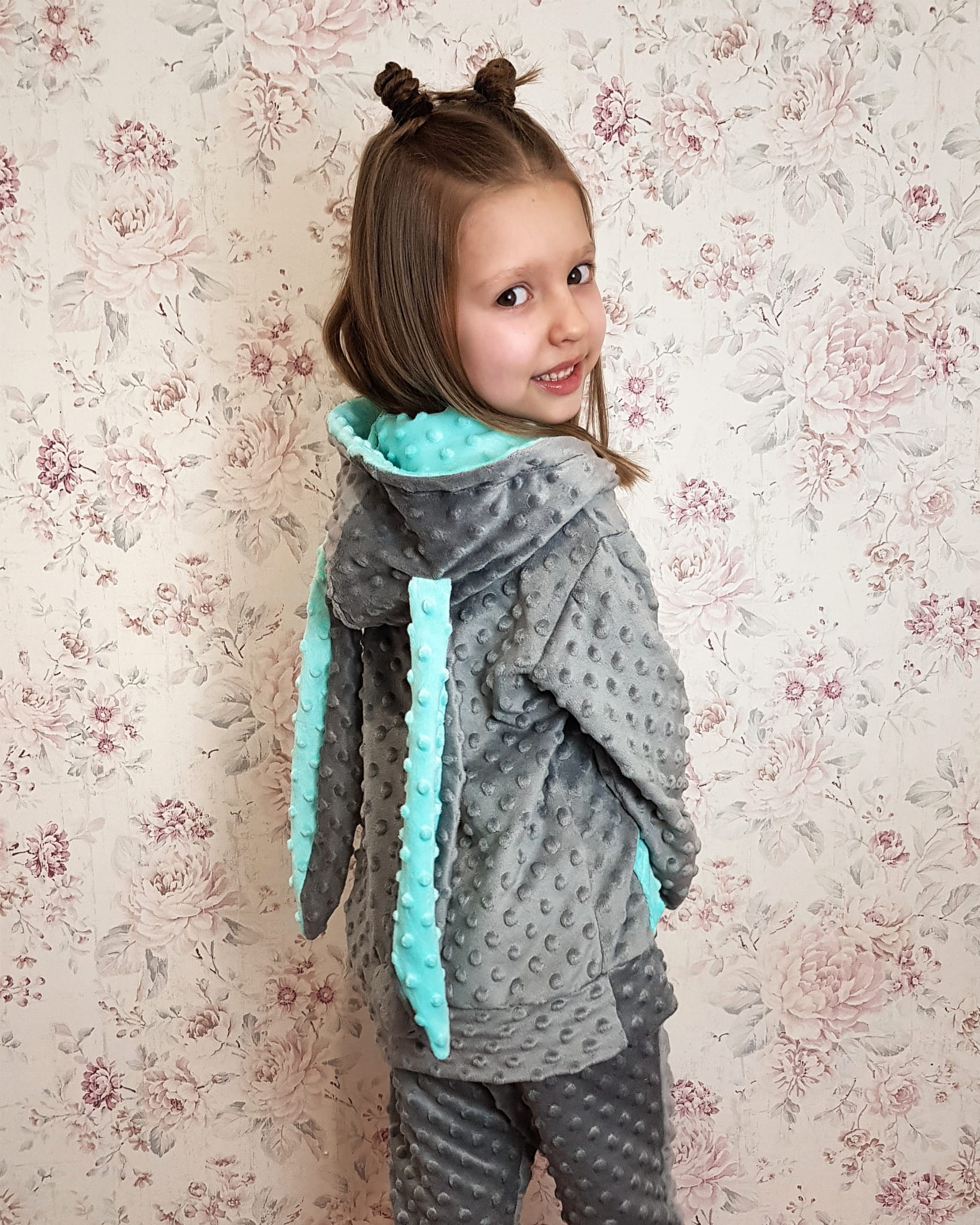 Mięciutka, cieplutka i bardzo wygodna bluza z kapturem i uszami królika. Uszyta z dbałością o najmniejszy szczegół, z najwyższej jakościpolary minky. Idealna na chłodne dni.