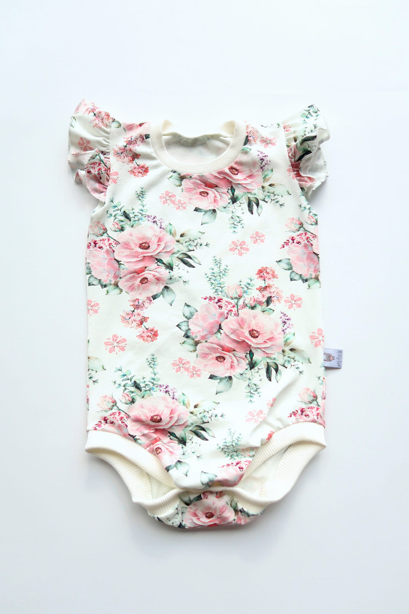Komplet bukieciki róż i róż kwarcowy - body i legginsy
