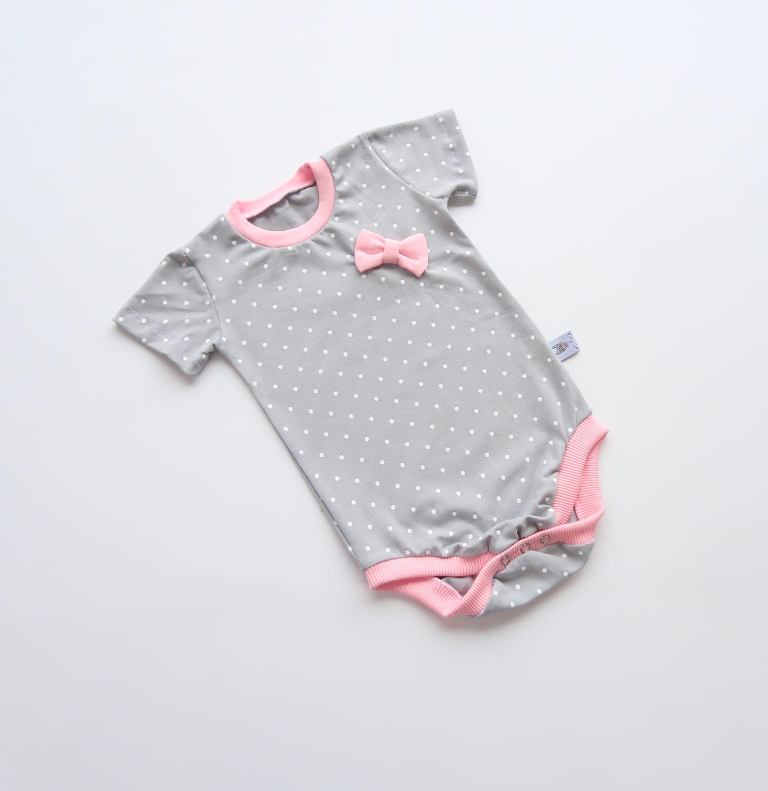 Komplet groszki na szarym z kokardką - body+legginsy