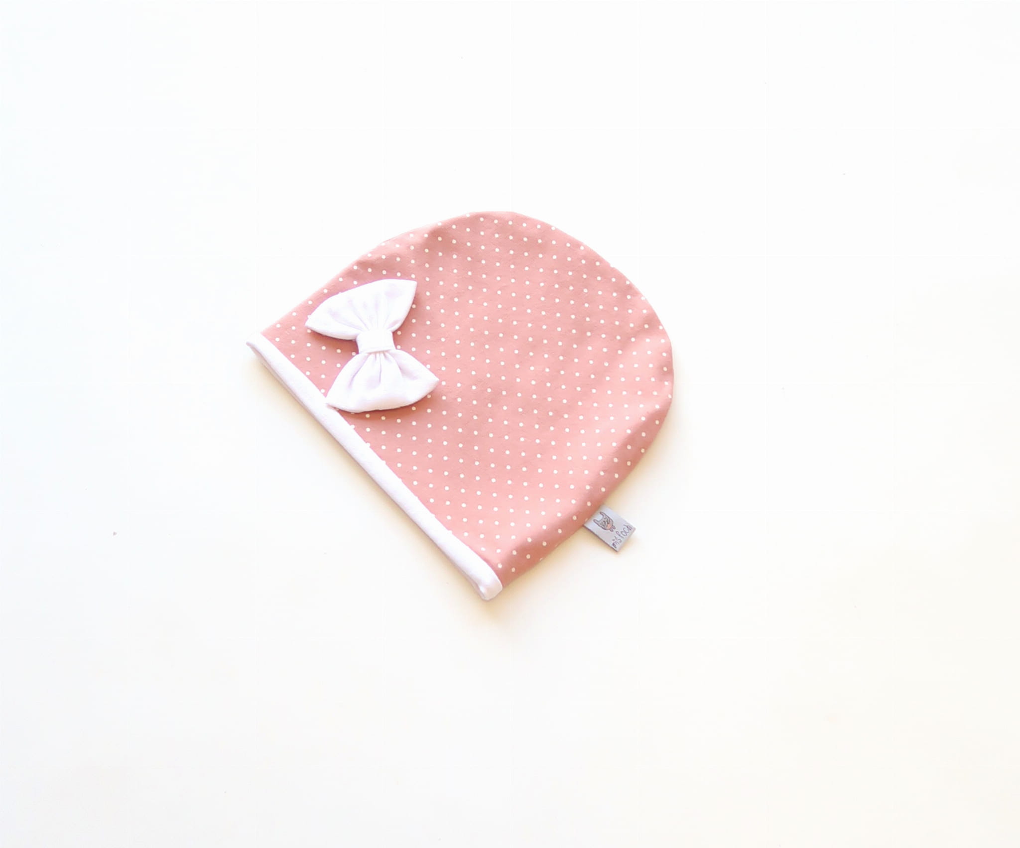 Czapka groszki na różu kwarcowym z kokardą