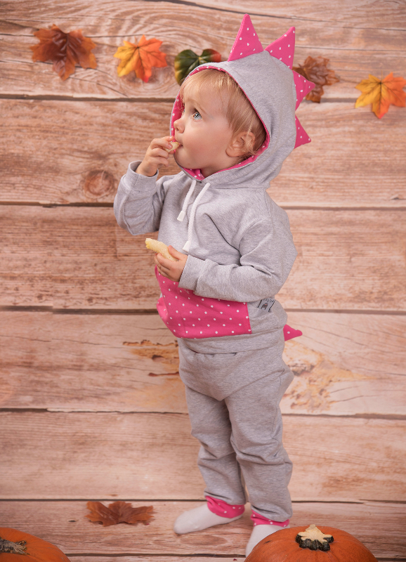 Komplet Dino groszki fuksja -bluza z kapturem i baggy