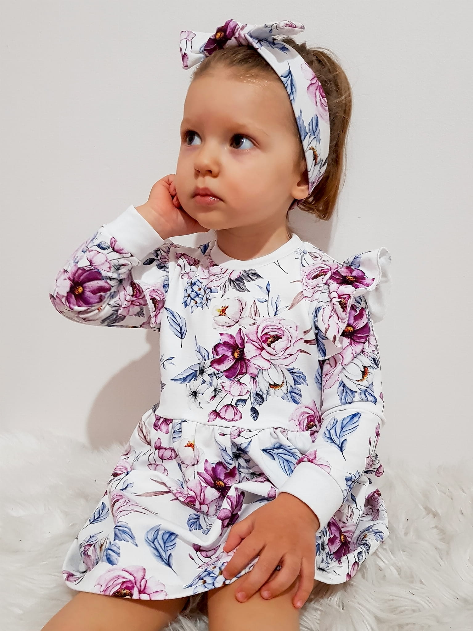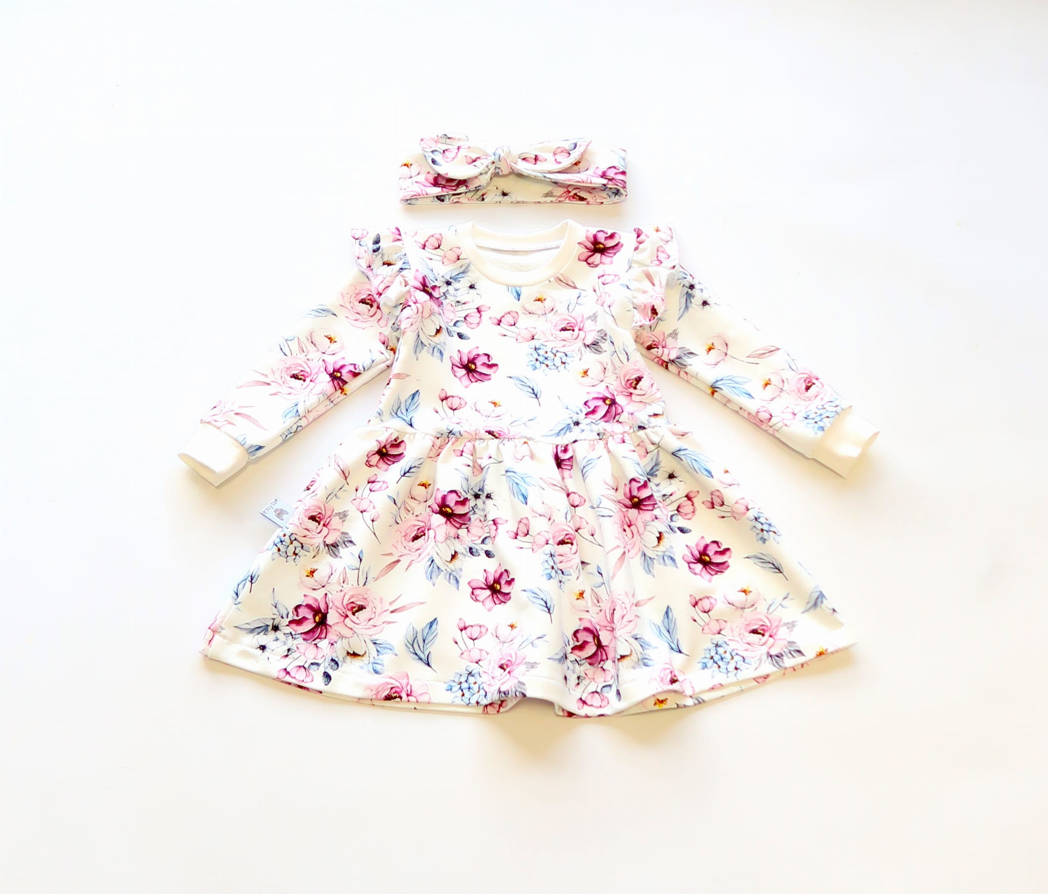Komplet akwarelowe kwiaty - sukienka i opaska