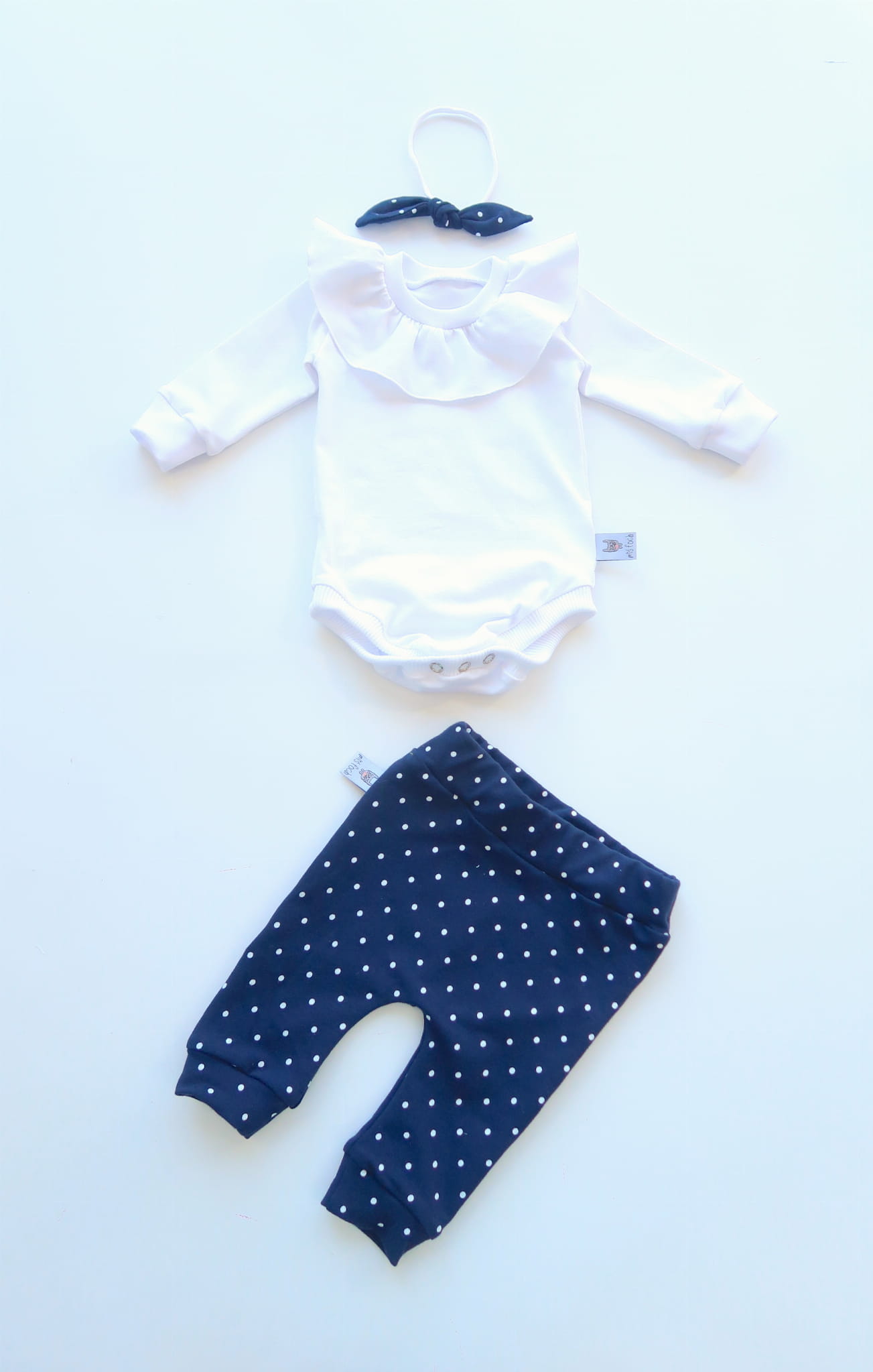 Komplet biel i granat z falbanką - body+legginsy+opaska
