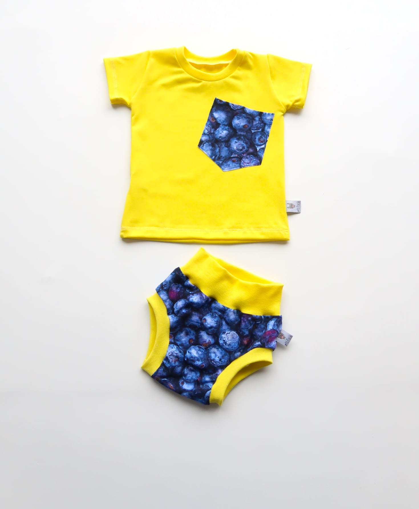 Komplet borówki - koszulka i bezuciskowe bloomersy