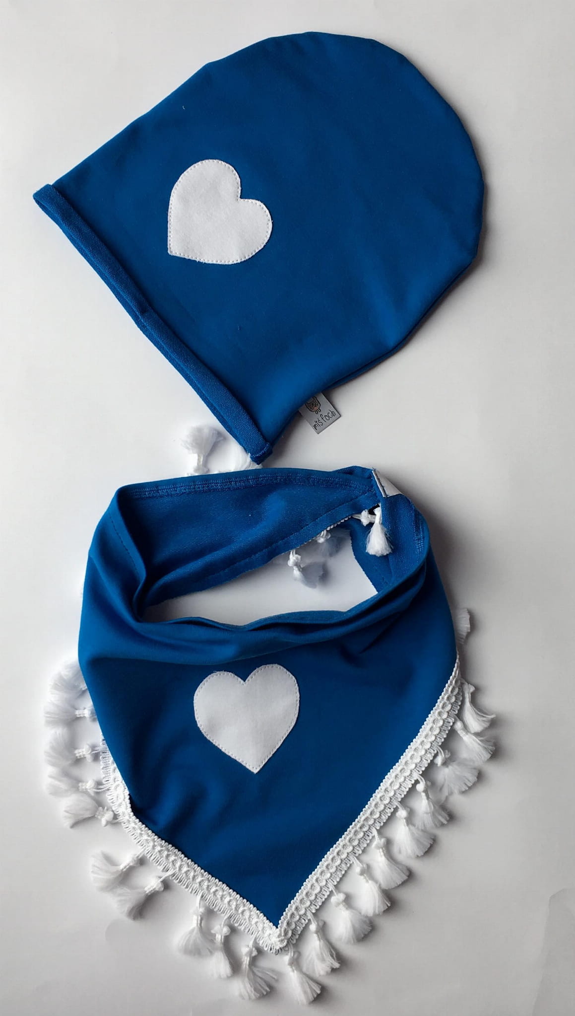 Komplet kropeczki i biel - czapka, chusta i opaska