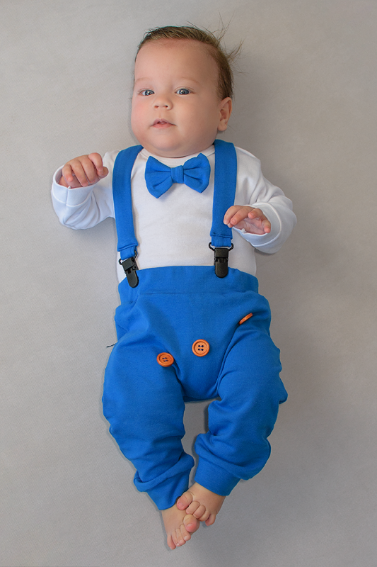 Komplet chaber z guziczkami - baggy i body z muchą oraz szelki