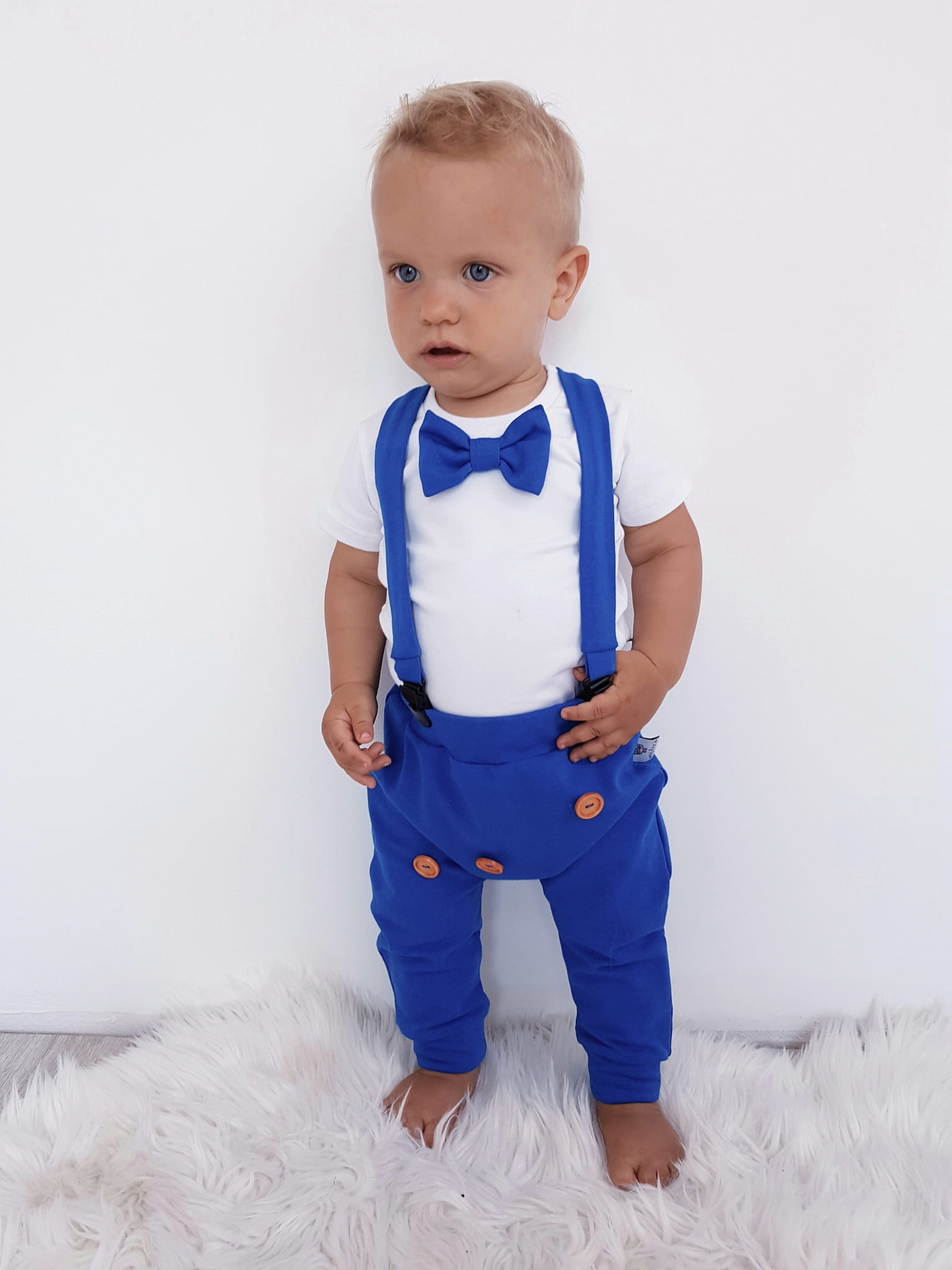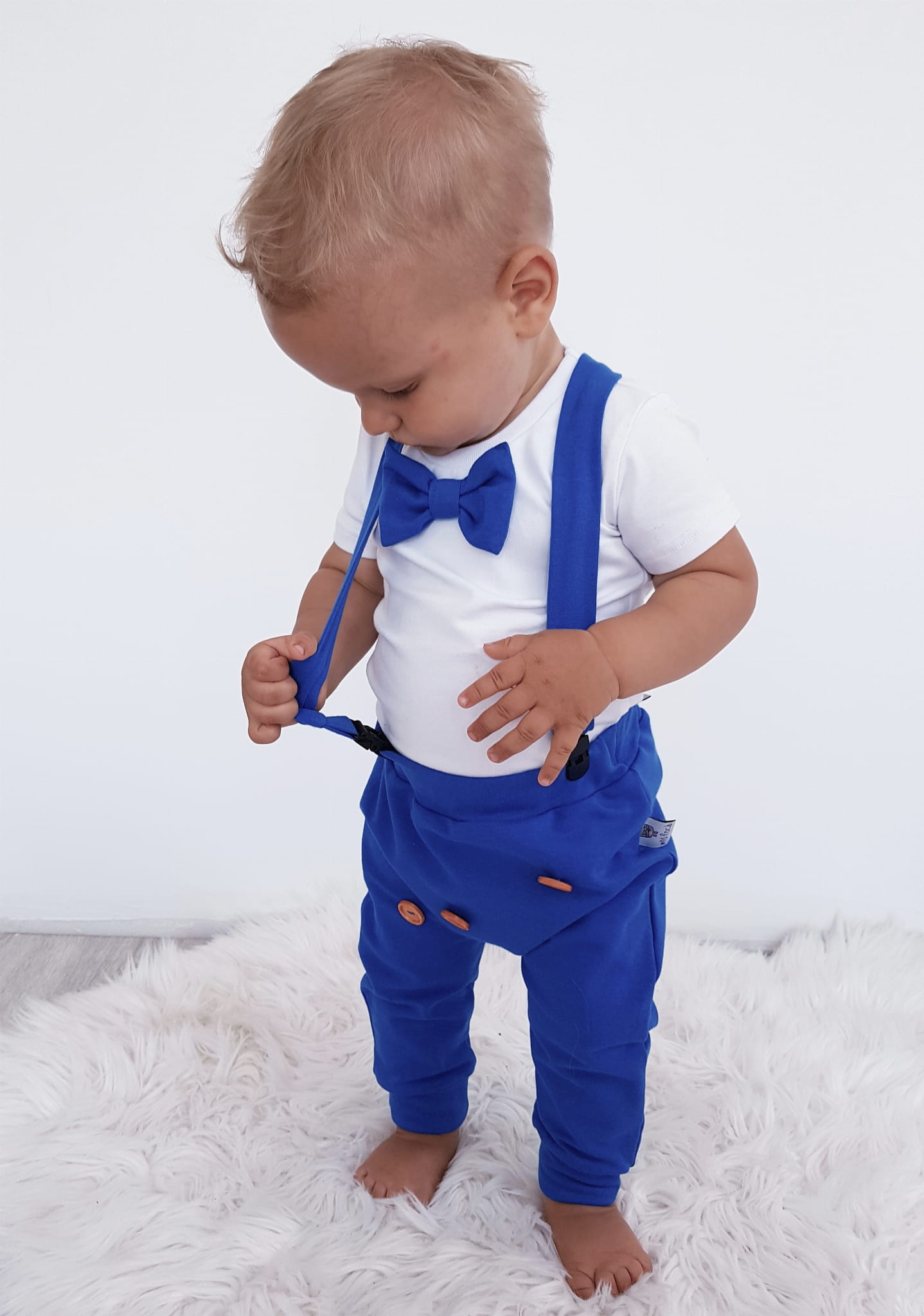 Komplet chaber z guziczkami - baggy i body z muchą oraz szelki