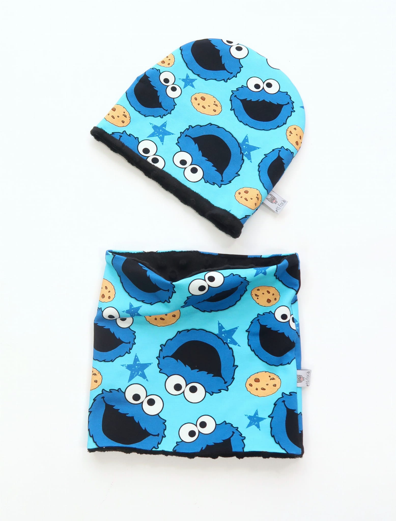 Cudowny, dwuwarstwowy komplet jesienno - zimowy dla Maluszka. Komplet - czapka i komin - wykonany z najwyższej jakości materiałów - ciepły, mięciutki i milutki.