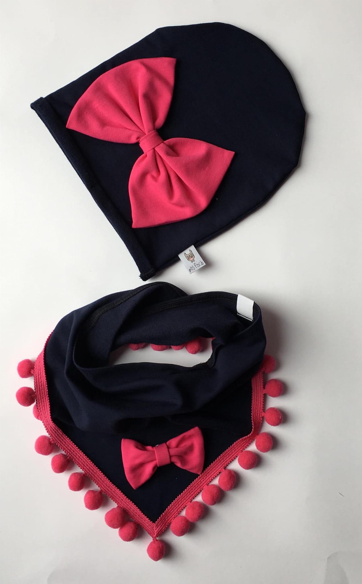 Cudowny, dwuwarstwowy komplet jesienno-zimowy dla Księżniczki. Komplet - czapka i chusta, wykonany jest z najwyższej jakości dresówki oraz polaru minky - ciepły, mięciutki i milutki.