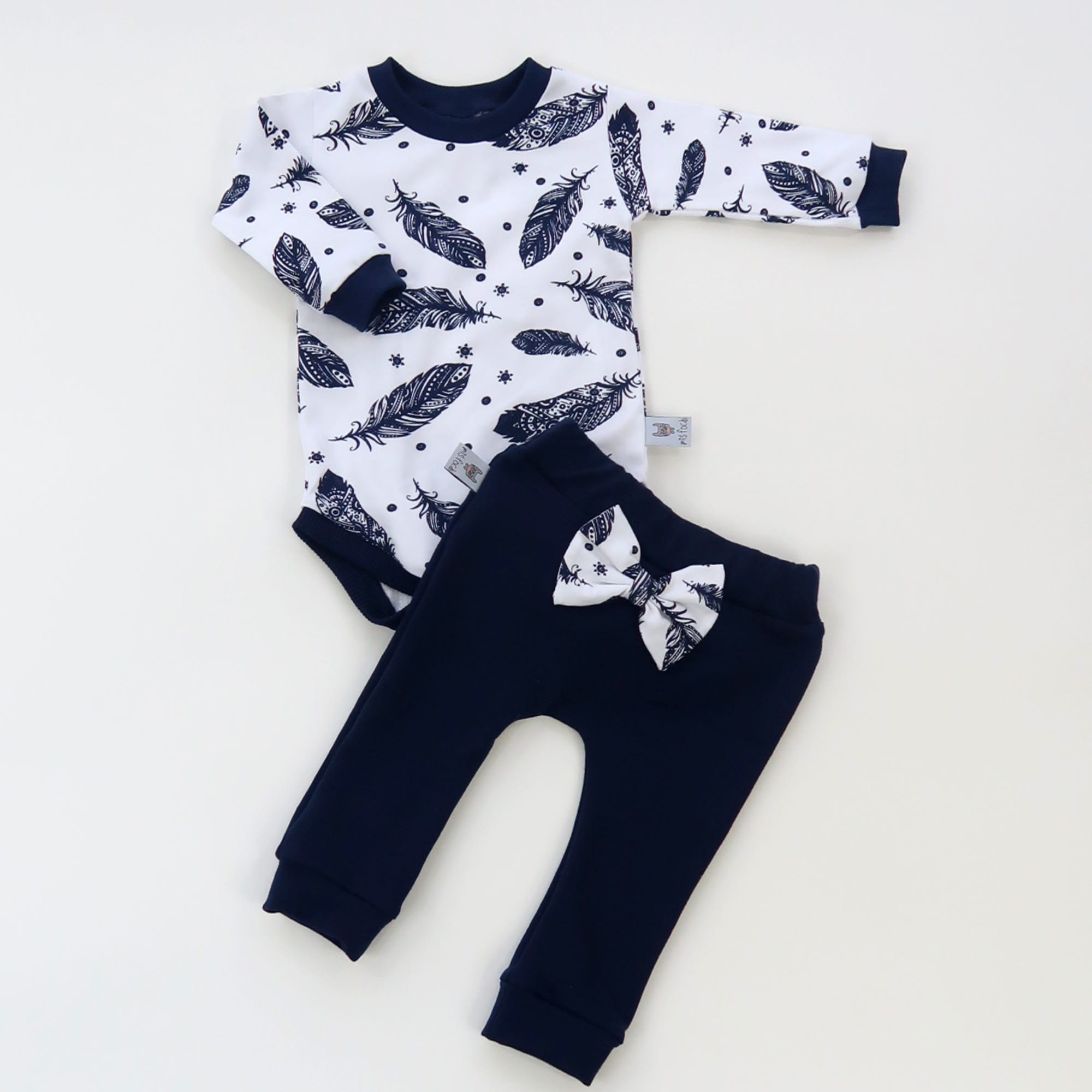 Komplet granatowe piórka - body+legginsy