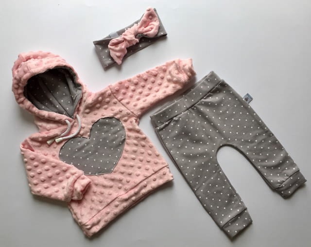 Komplet różowe minky i groszki - bluza+legginsy+opaska