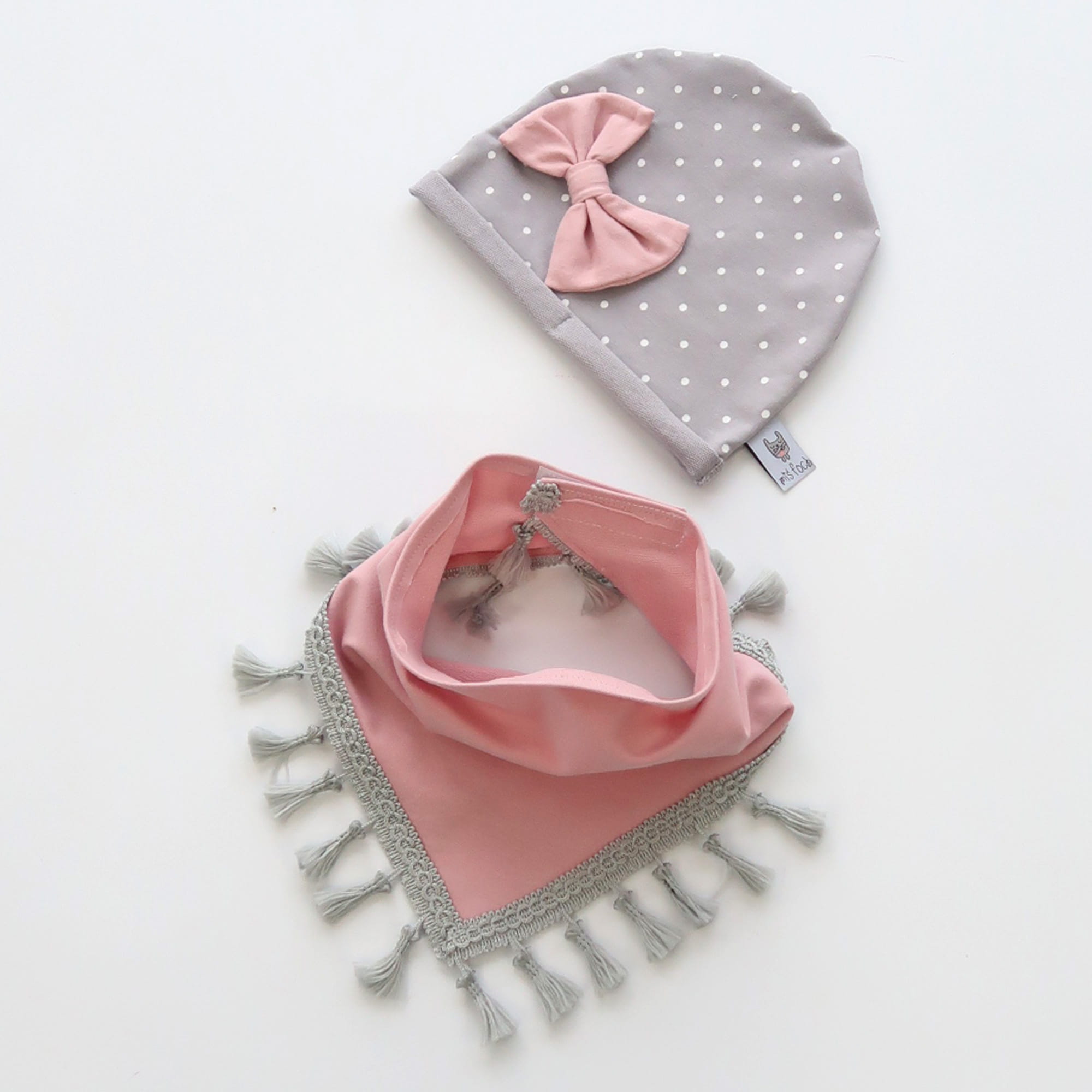 Komplet groszki i róż - czapka i chusta