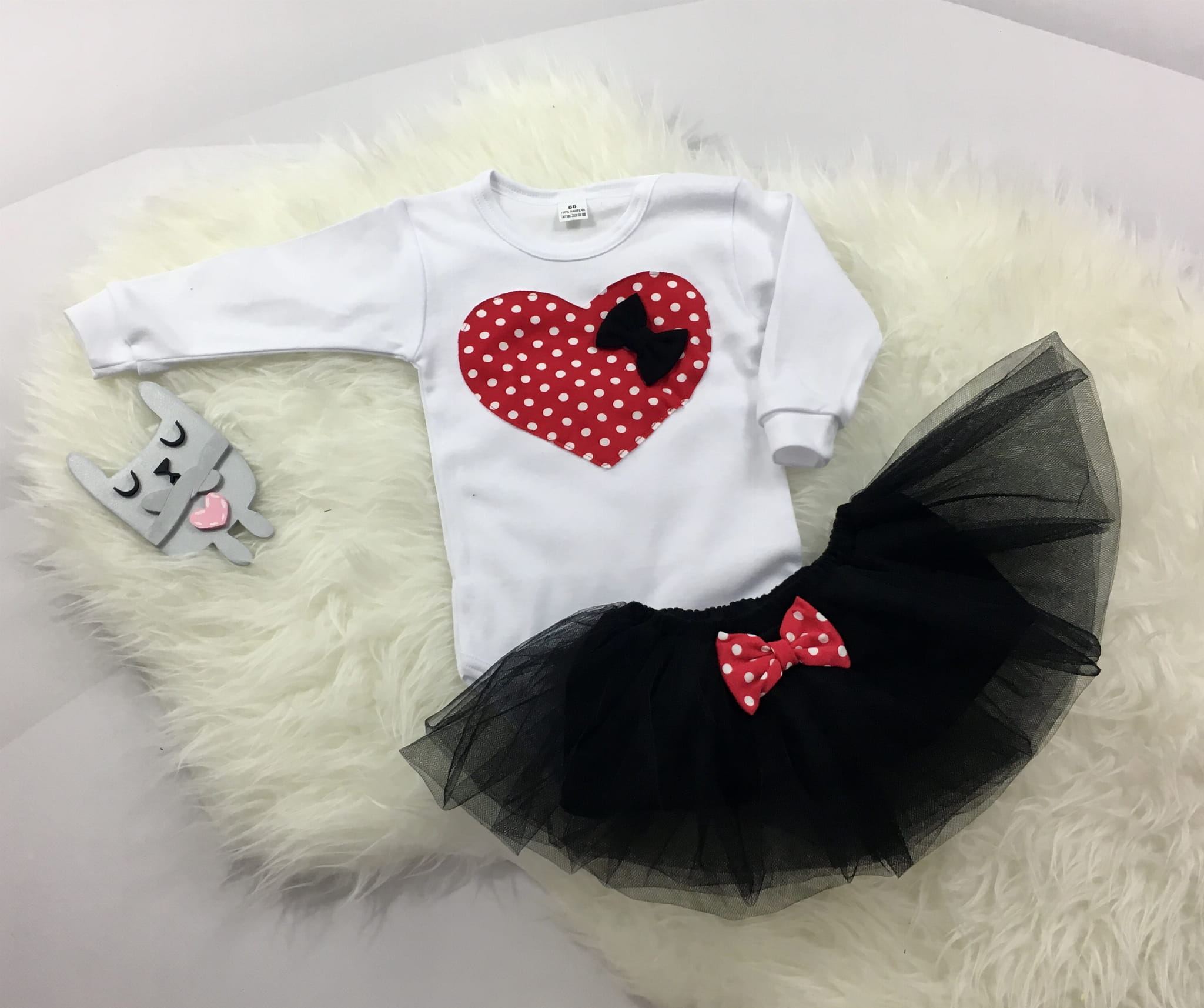 Komplet groszki na czerwieni - body i spódniczka tiulowa