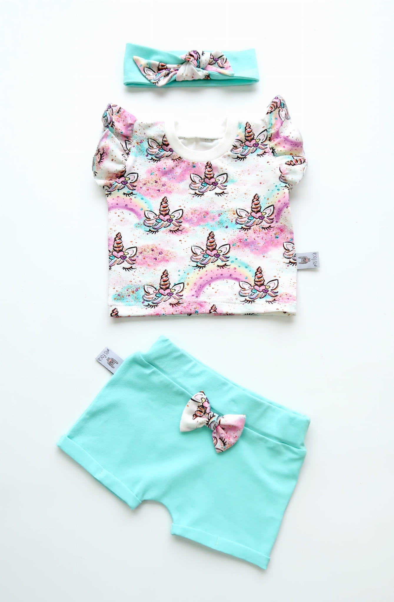 Komplet jednorożce i aqua - koszulka, spodenki i opaska