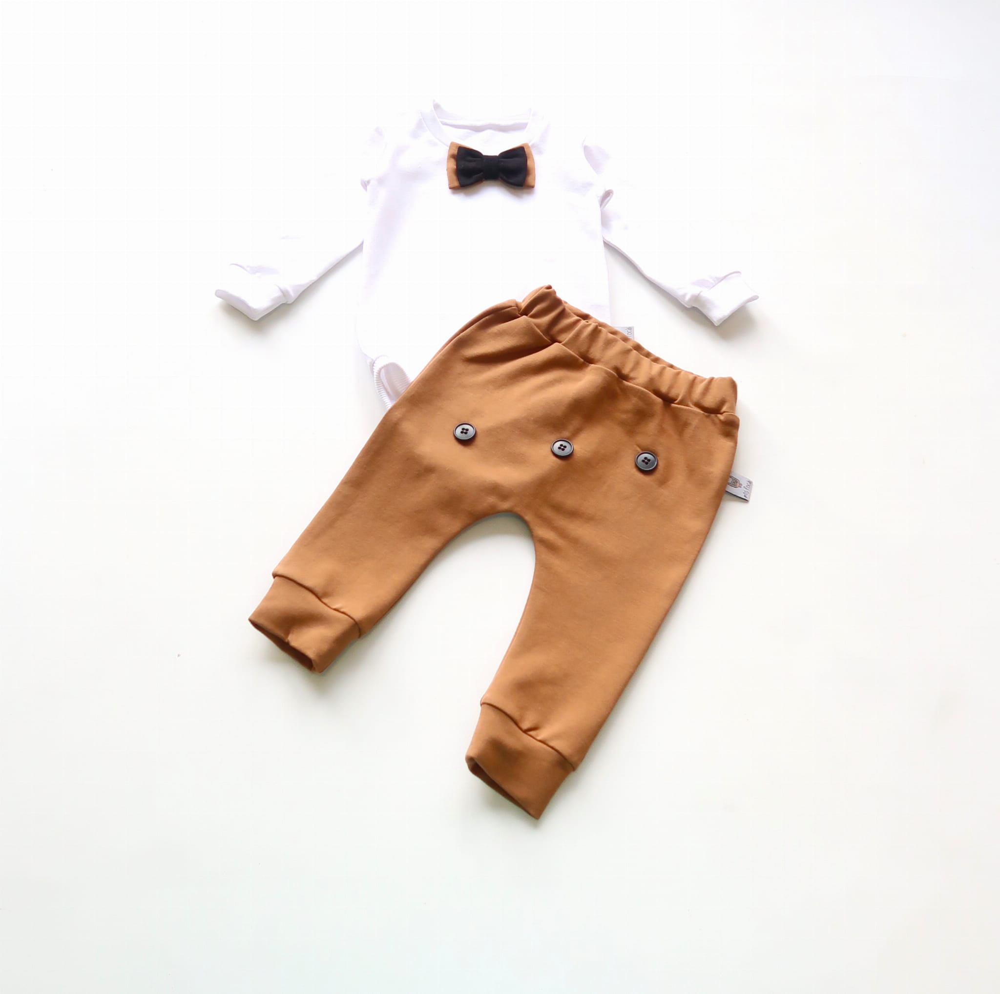 Cudownie miękki, elegancki, ale przede wszystkim wygodny komplecik - baggy oraz body z muchą  :) Uszyty z dbałością o najmniejszy szczegół, z najwyższej jakości dresówki.