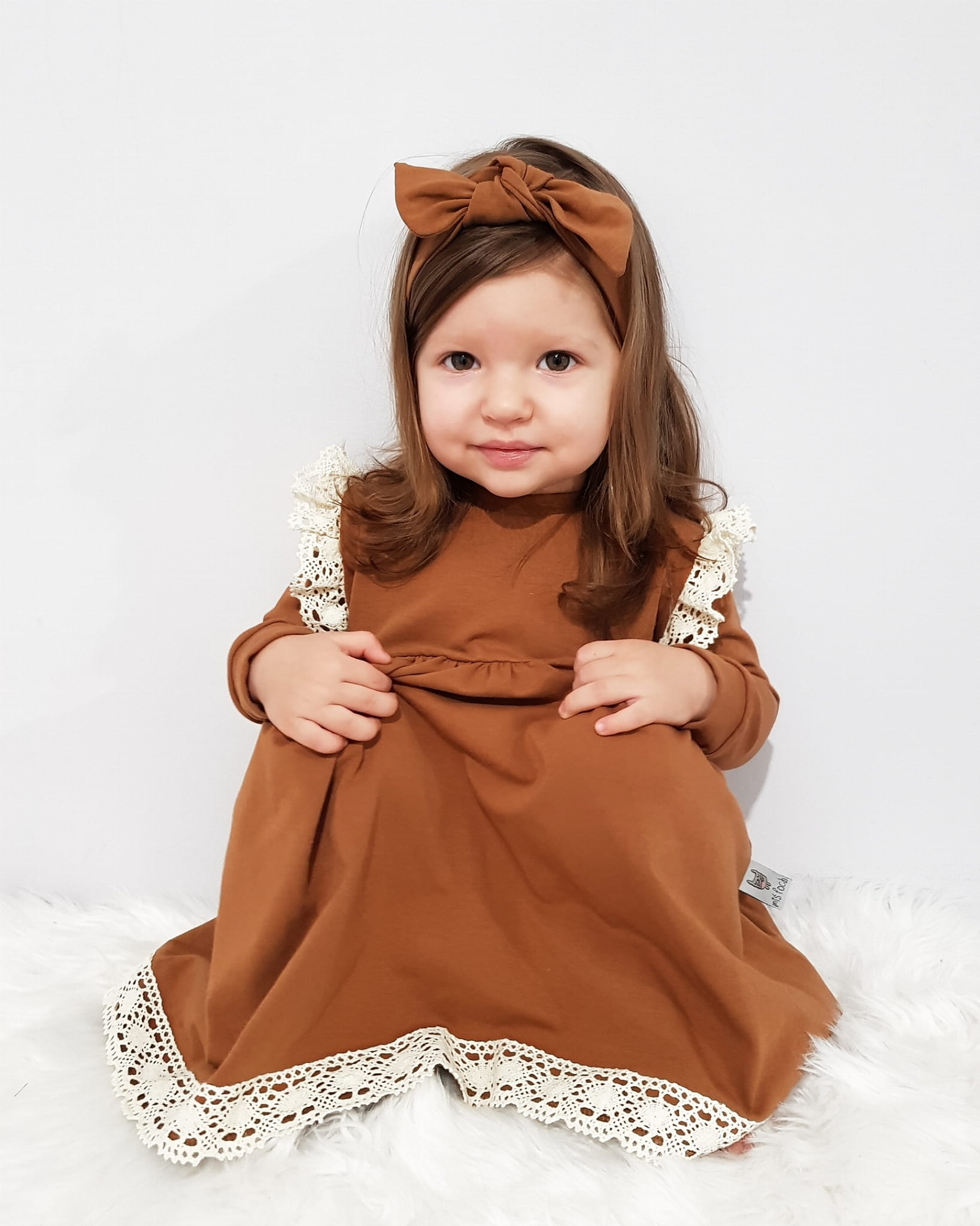 Komplet karmel z koronką 2 - sukienka i opaska