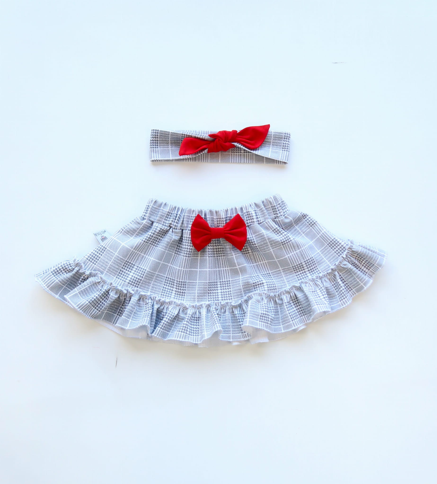Komplet krata Glen i czerwień - body, spódniczka i opaska