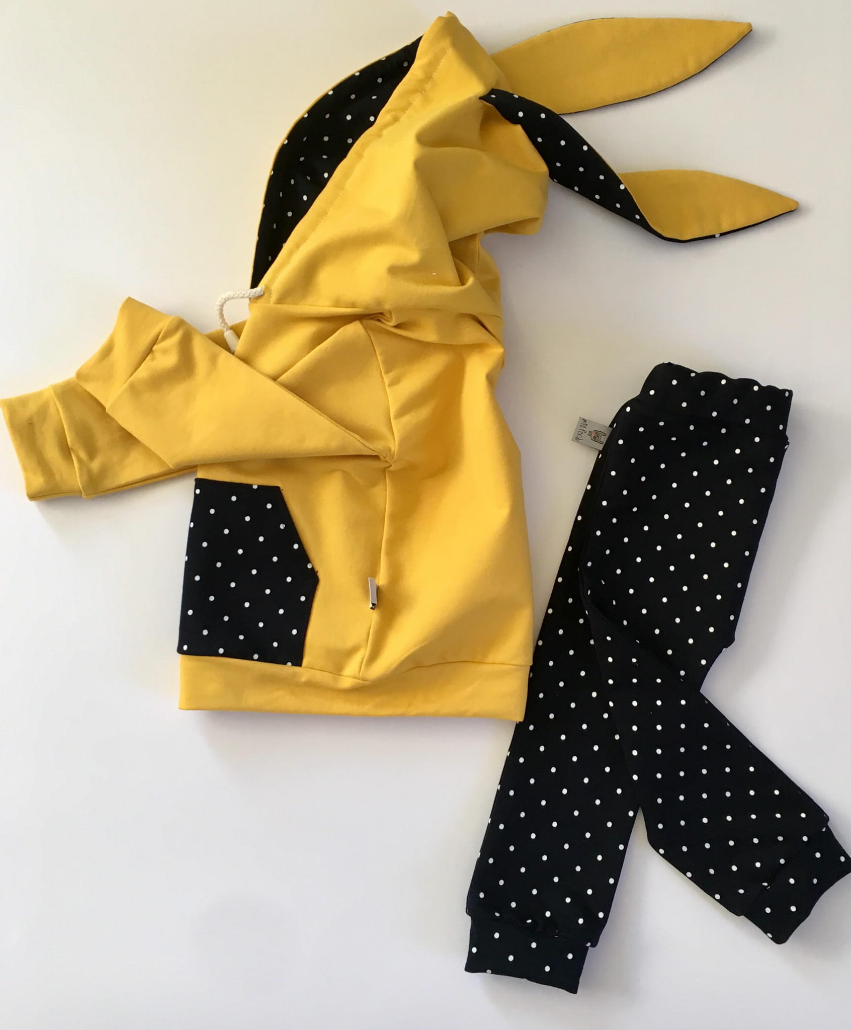 Komplet króliczek - musztarda i granat w groszki - bluza i baggy