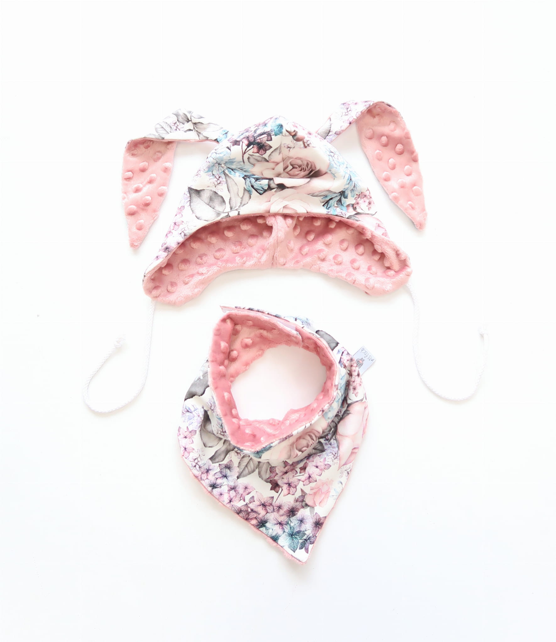 Komplet króliczek romantyczne róże - czapka i chusta