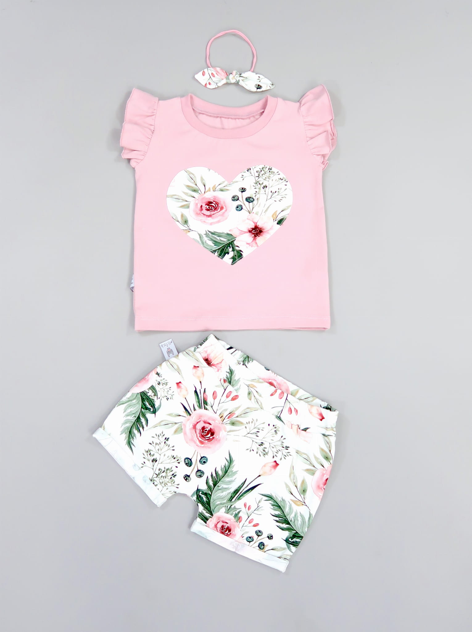 Komplet kwiaty w ogrodzie i róż kwarcowy 2 - koszulka, spodenki i opaska