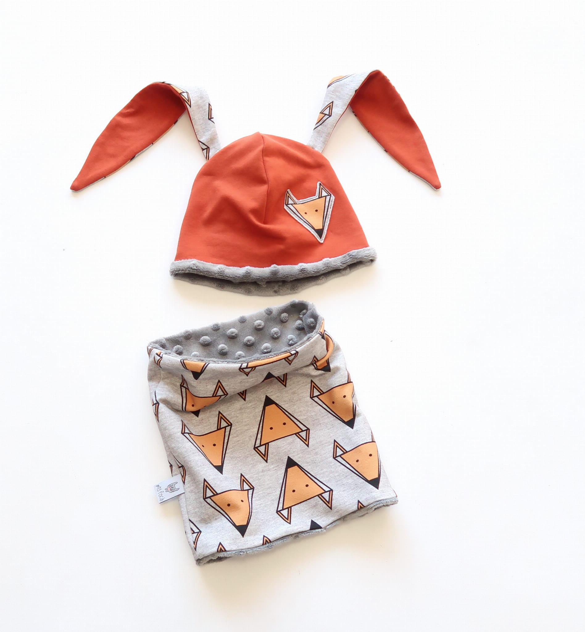 Komplet liski na szarym (czapka i komin)
