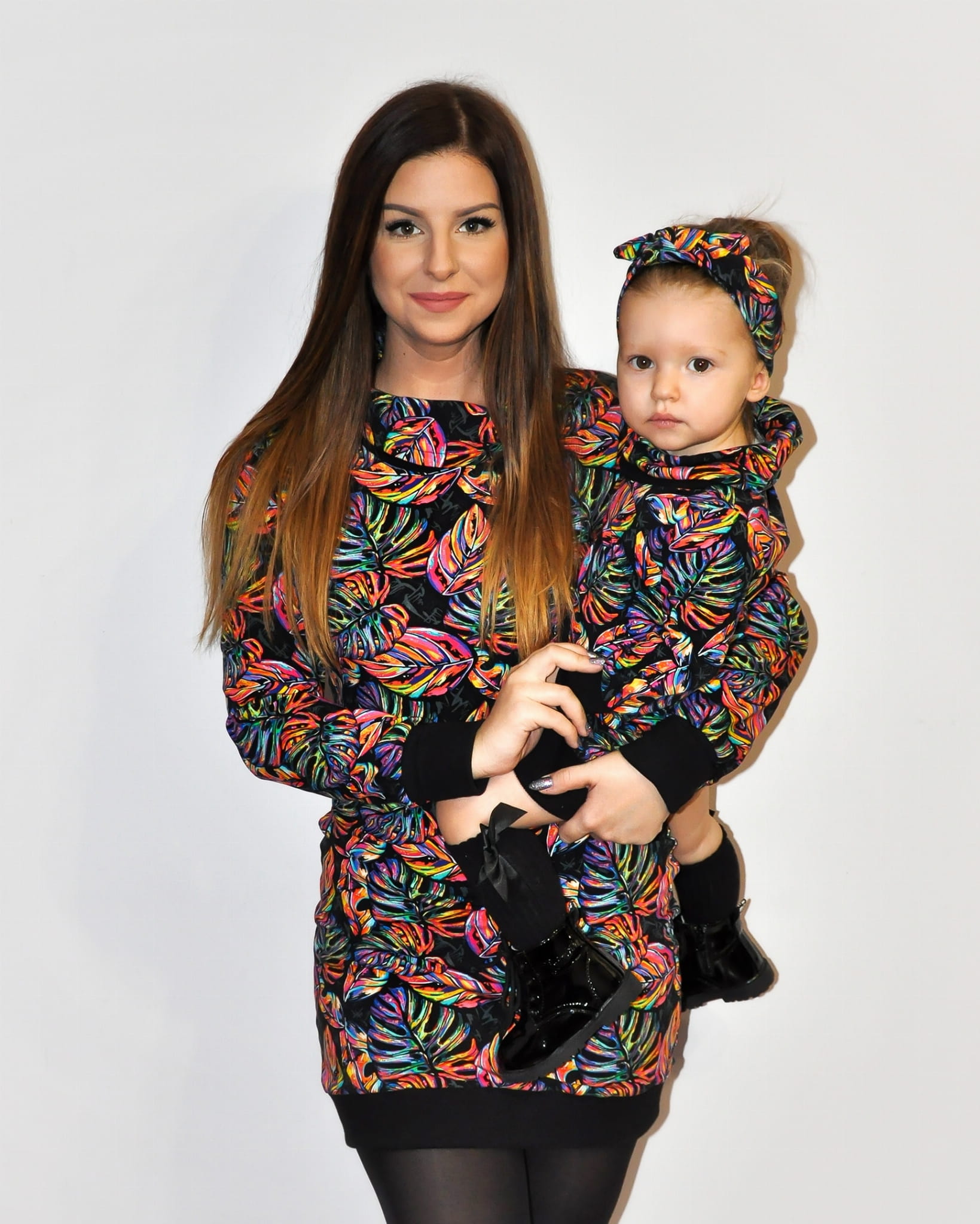 W skład kompletu wchodzą: sukienka dla mamy i dla córeczki.