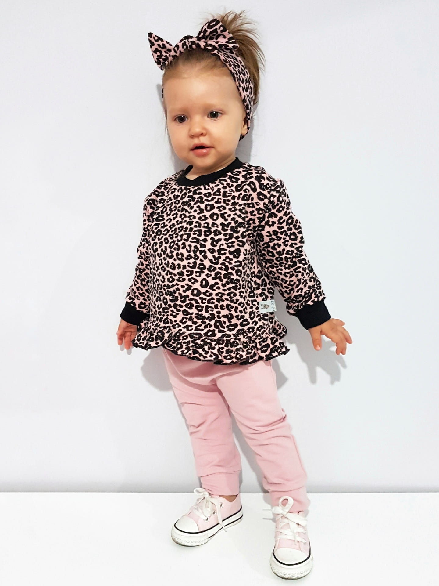 Komplet panterka - bluza, legginsy z falbankami i opaska
