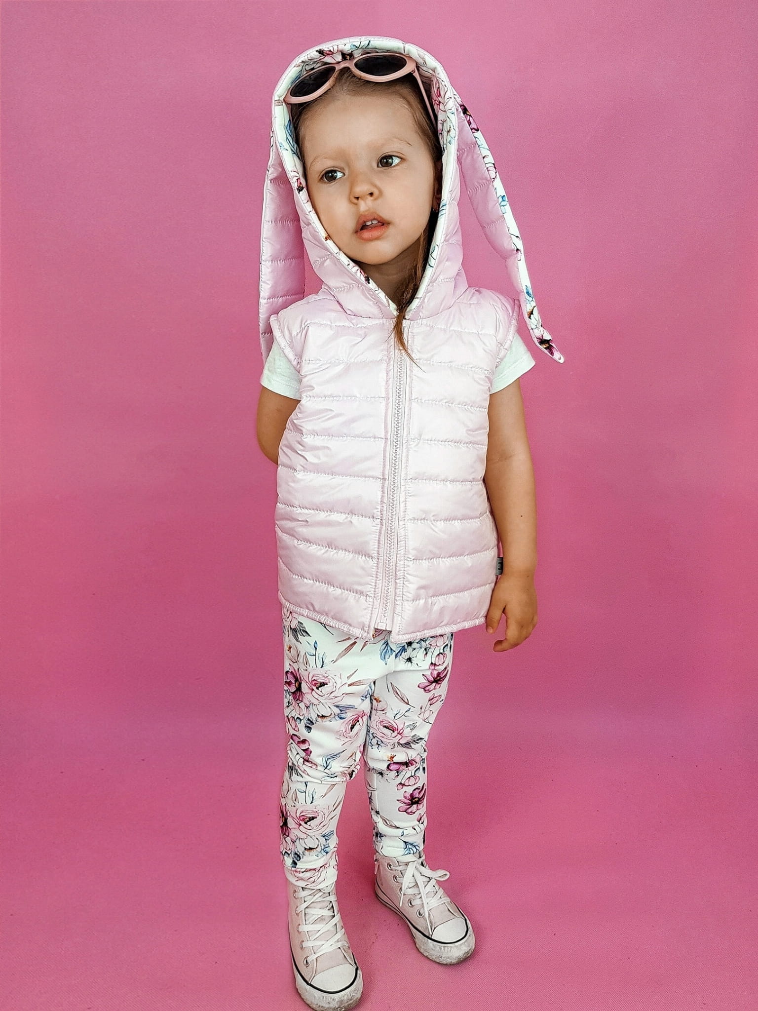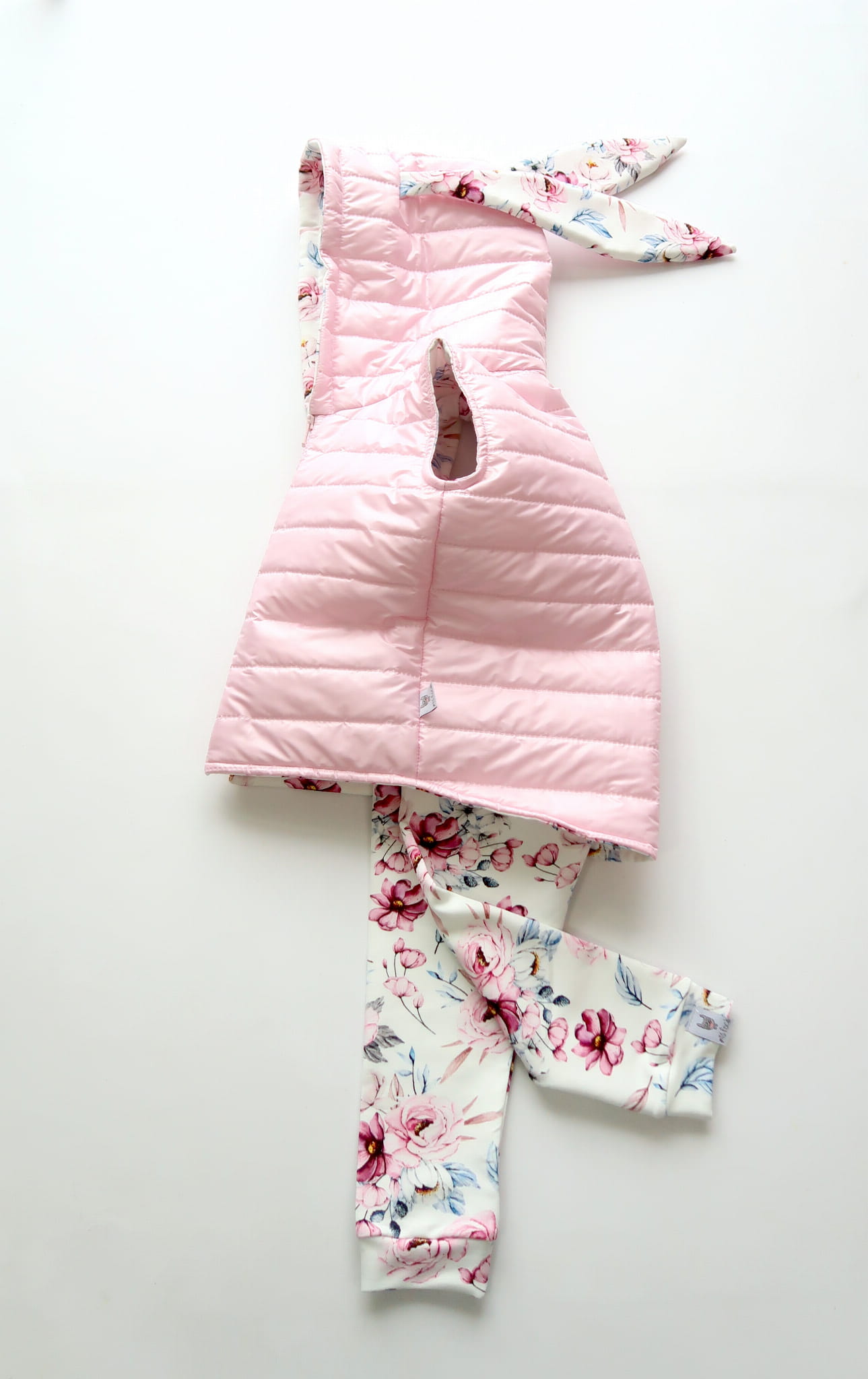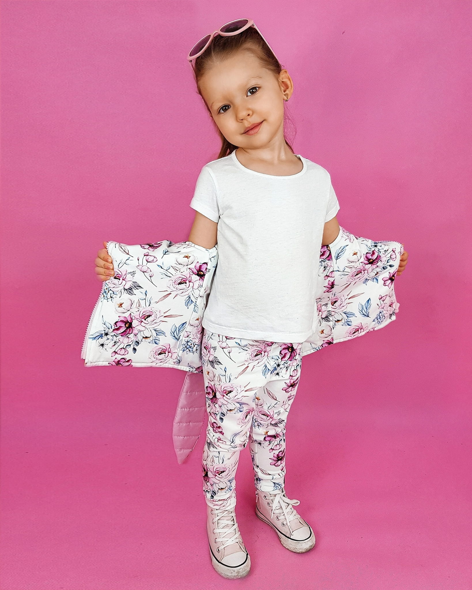 Komplet pikówka i akwarelowe kwiaty - bezrękawnik i legginsy