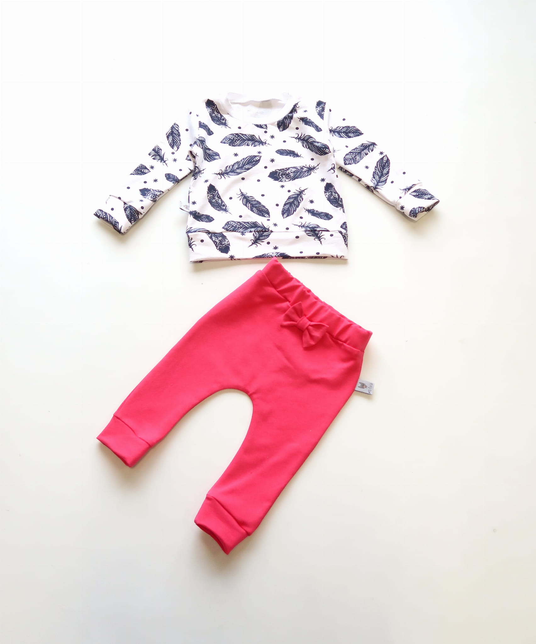Komplet piórka granat i fuksja - bluza i legginsy