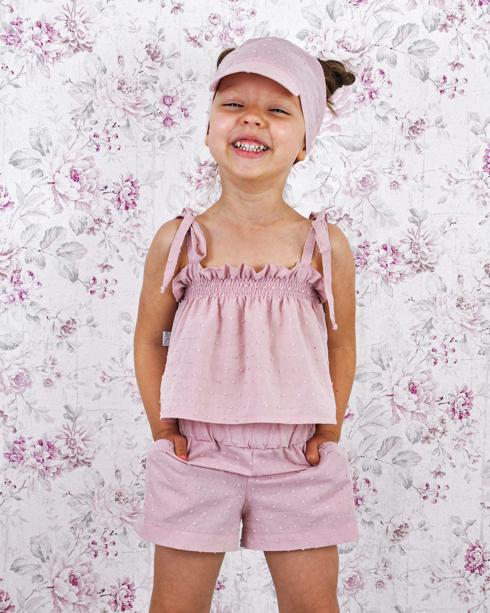 Komplet róż kwarcowy batyst - koszulka, spodenki i chusta z daszkiem