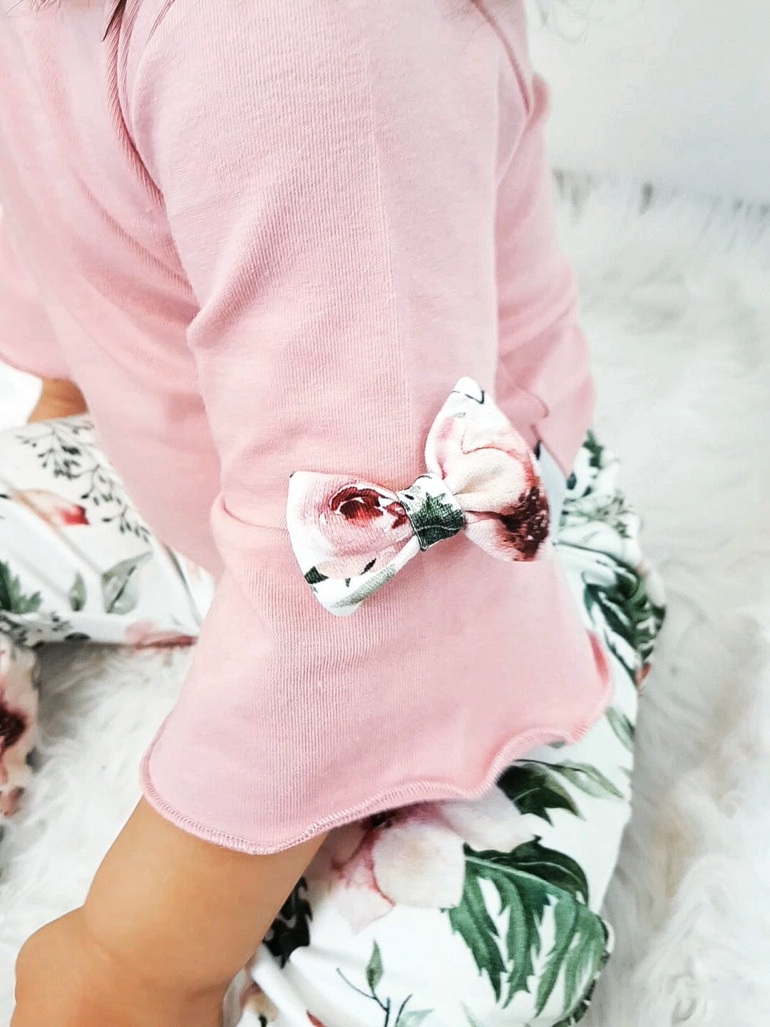 Komplet kwiaty w ogrodzie i róż kwarcowy - body i legginsy
