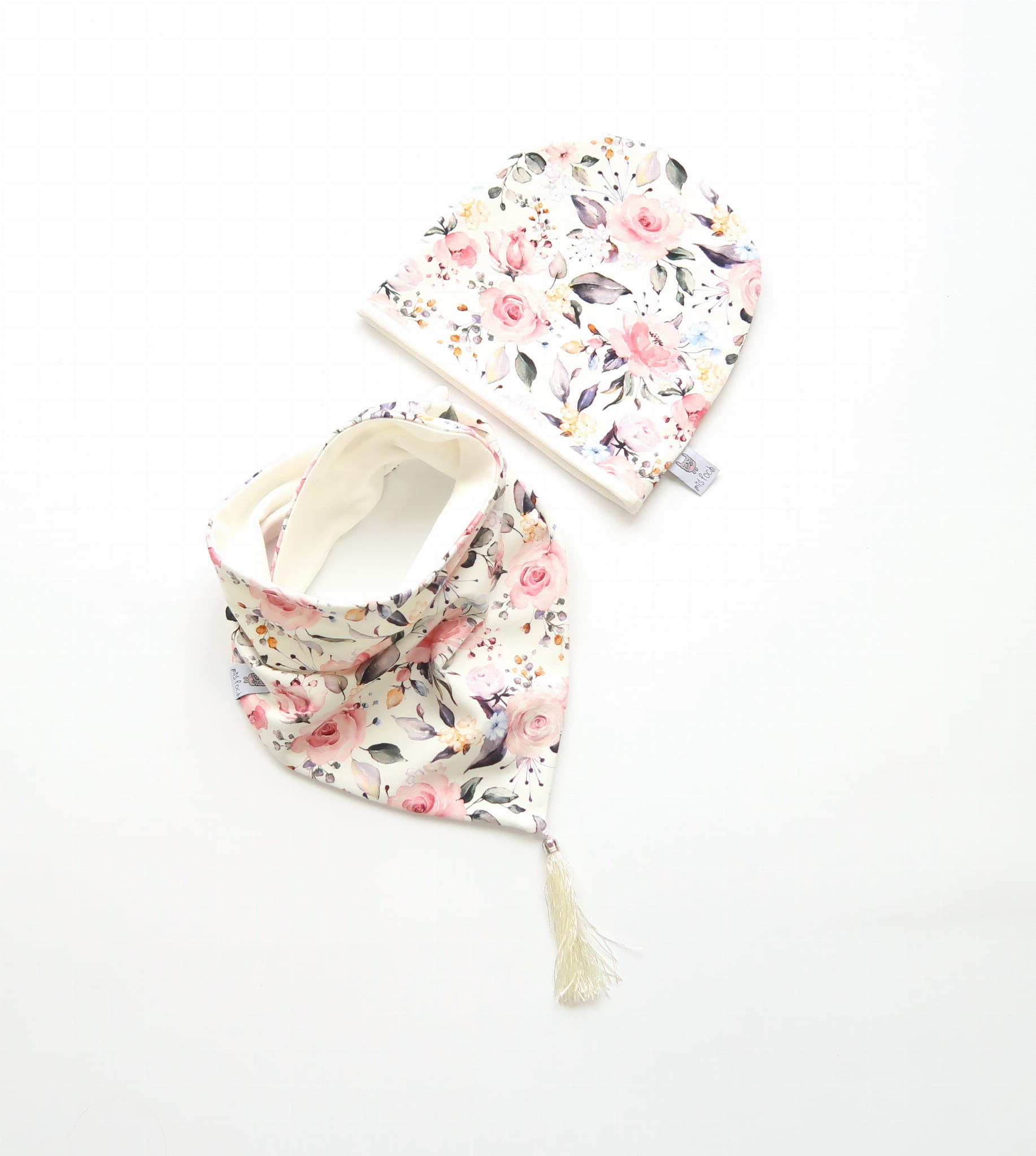 Cudowny, dwuwarstwowy komplet jesienno-zimowy dla Księżniczki. Komplet - czapka i chusta, wykonany jest z najwyższej jakości dresówki oraz polaru minky - ciepły, mięciutki i milutki.