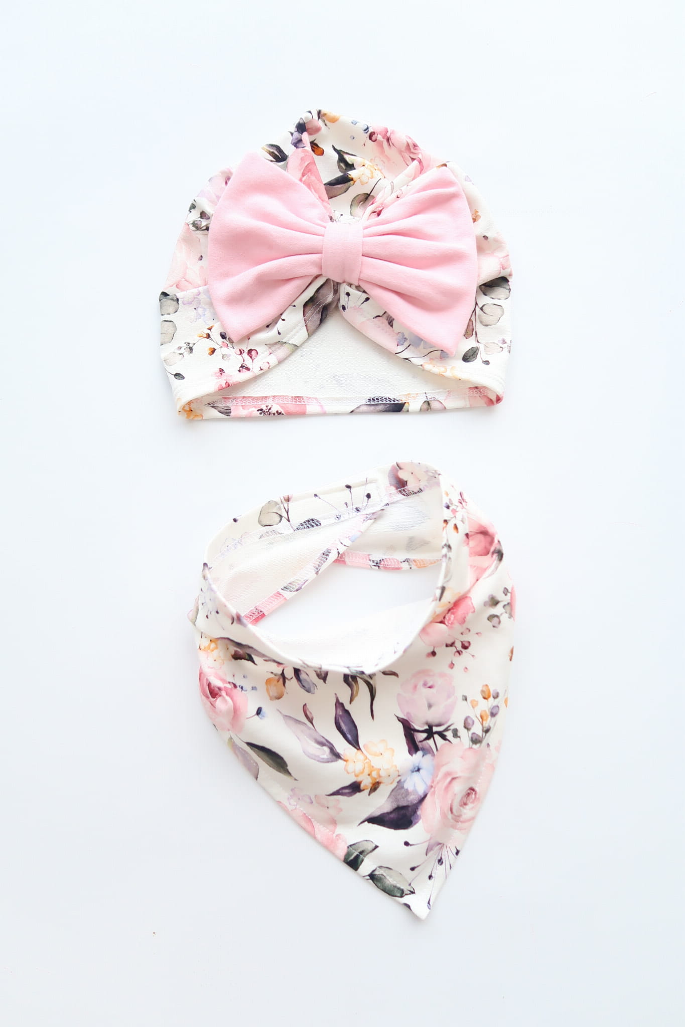 Cudowny, jednowarstwowy komplet wiosenno - jesienny dla Maluszka. Komplet - turban i chusta, wykonany jest z najwyższej jakości materiałów  -  mięciutki i milutki.