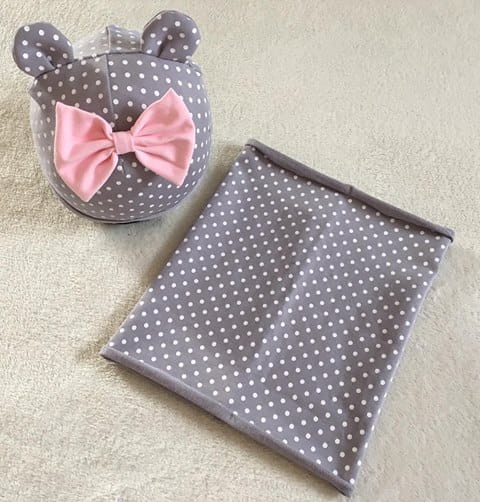 Powyższy komplet może być podszyty od wewnątrz milutką dzianiną lub polarem minky. Dostosuj komplet do potrzeb swojego Maluszka!